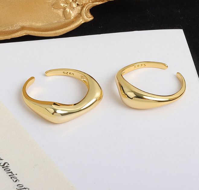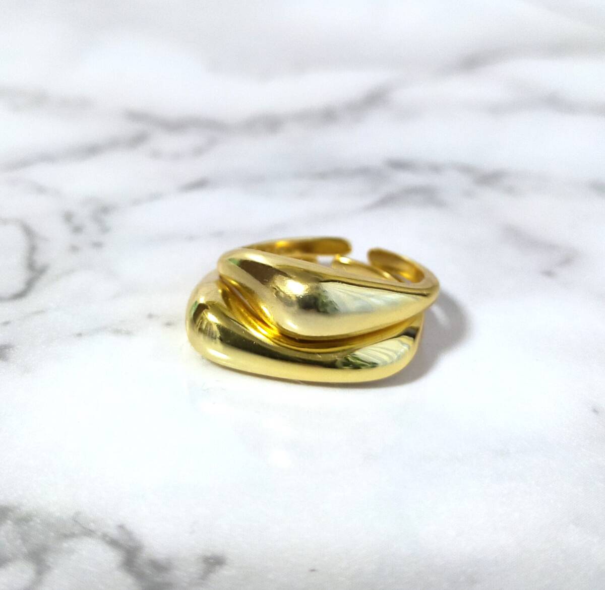 2点セット ゴールド デザインリング 11号 変形 ぷっくり お洒落 指輪 リング 金色 アクセサリー