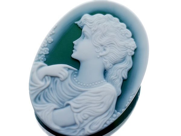 美しい貴婦人を繊細な彫刻で演出した素敵な高級グリーンストーンカメオルースです!