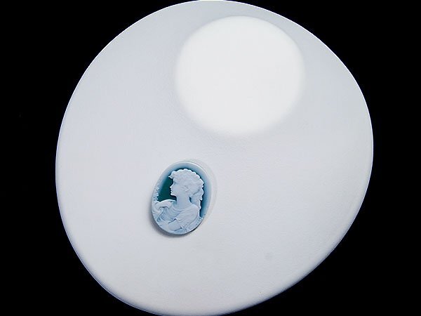 知的な表情を浮かべる女性像は、柔らかい髪や服の曲線や、艶やかな肌の質感など、精緻を極めた繊細な彫刻で演出された魅力的なグリーンストーンカメオルース作品です!