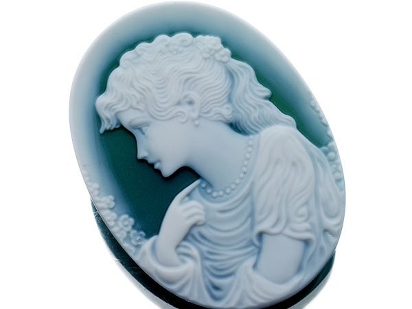 【ジュエリー極 】ポニーテールとピアスの貴婦人 高級グリーンストーンカメオルース 40.0mm×30.0mm a1832i【送料無料】