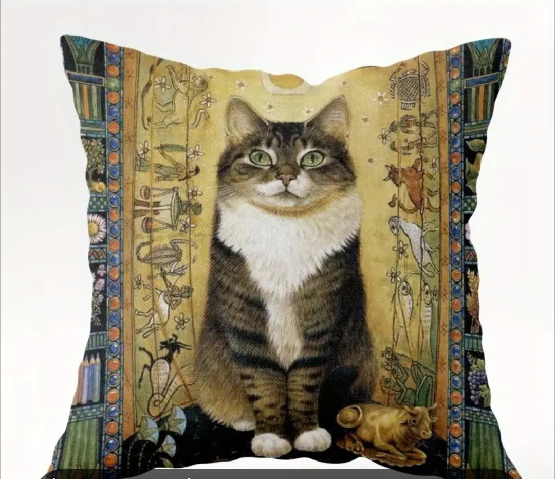 こちらは、新品未使用 三毛猫 キジトラ お花 絵画風 ポリエステル クッションカバー インテリア になります♪