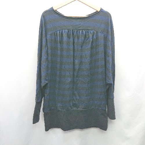 ◇ ⊇ n'OrLABEL ノアールレーベル ボーダー柄 長袖 チュニック サイズF ブラック ブルー レディース E