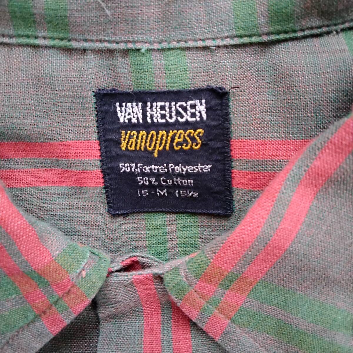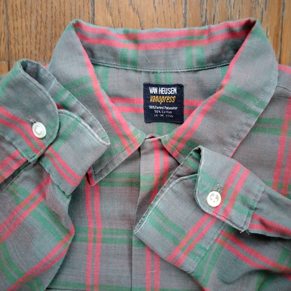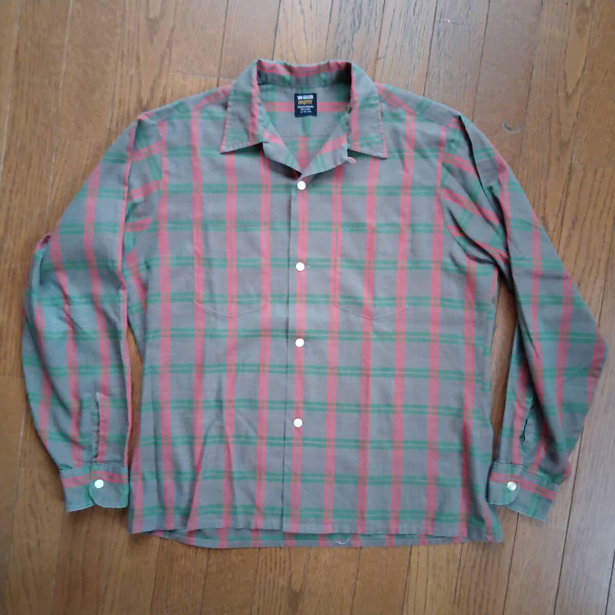 レア60’s ~70’sビンテージ VAN HEUSEN ポリコットンオープンカラーシャツ M チェック柄 ヴィンテージ vintage ダブルポケット permanentpressになります。