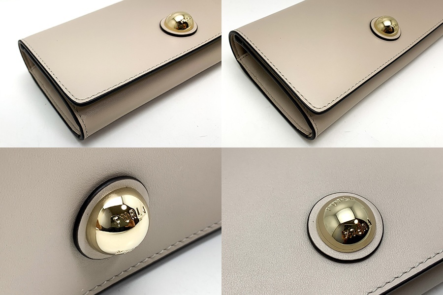 | フルラの長財布になります。ソフトでしなやかなレザーを使用した、スタイリッシュなフルラ スフェラ(Furla Sfera) コンチネンタルウォレット。現金とカード、IDが十分に収まる長財布です。プレススタッズ付きのフラップには、ブランドのアイコニックなホールマークをイメージした新デザインの丸いメタルハードウェアがあしらわれ、ジュエリーのようなきらめきを添えています。※公式HPより引用。カラー:vanigliaになります。Aランク。目立った汚れはなく、綺麗なお品になります。 | |