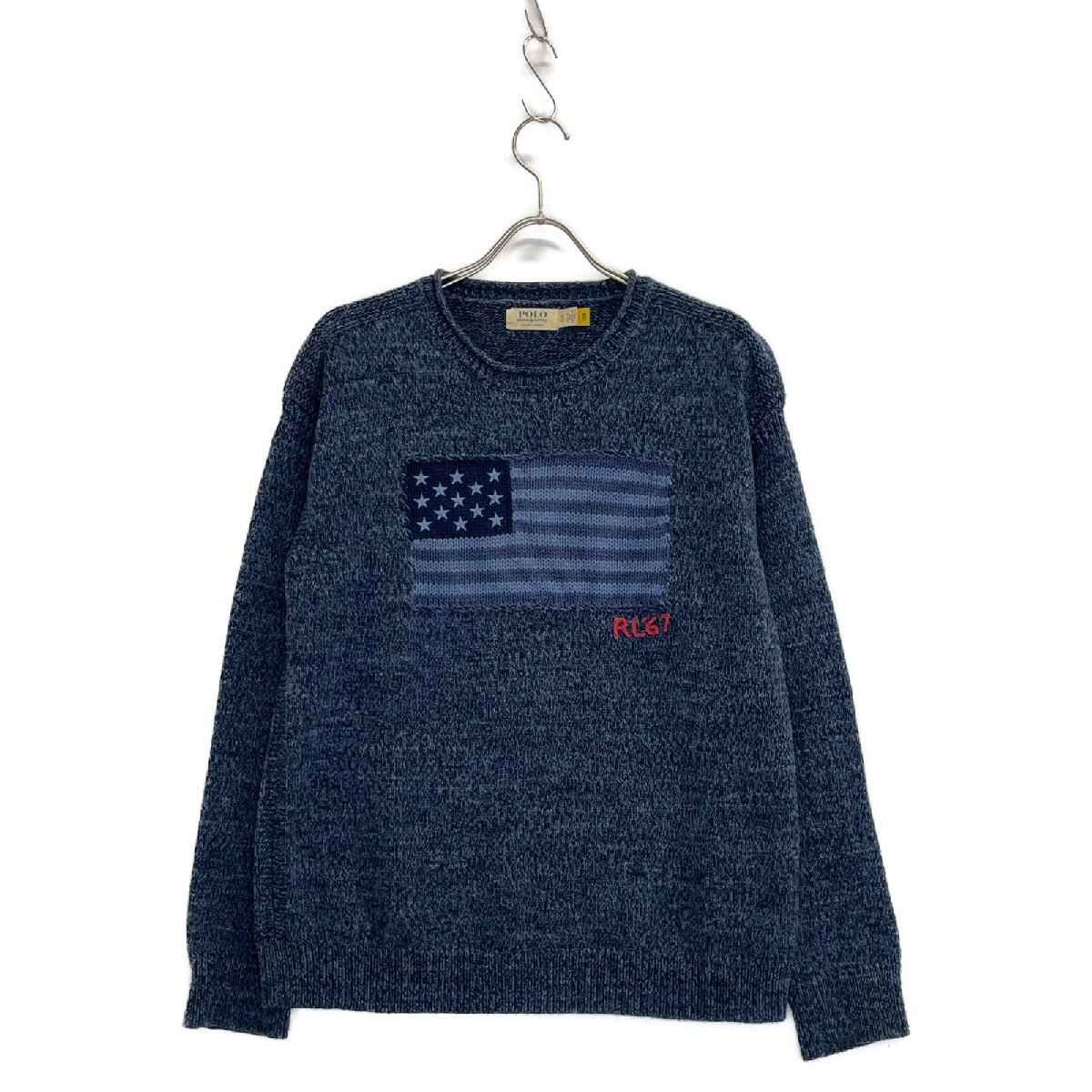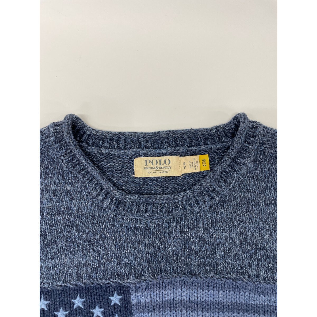 DENIM&SUPPLY& デニムサプライ ネイビー 国旗柄 星条旗 クルーネック ニット ネイビー S トップス コットン メンズ 中古