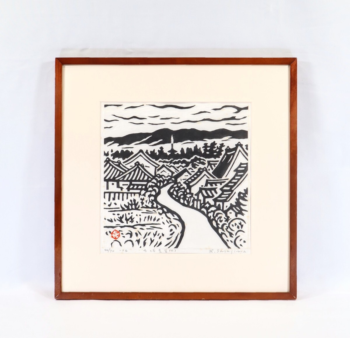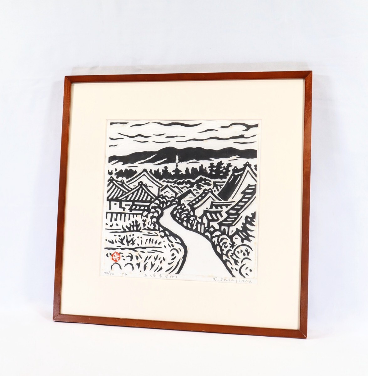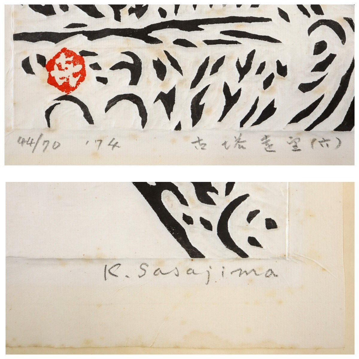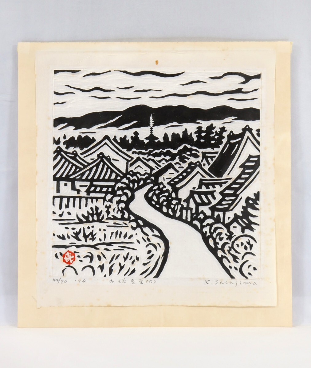 ★笹島喜平 拓刷木版画「古塔遠望 六」★