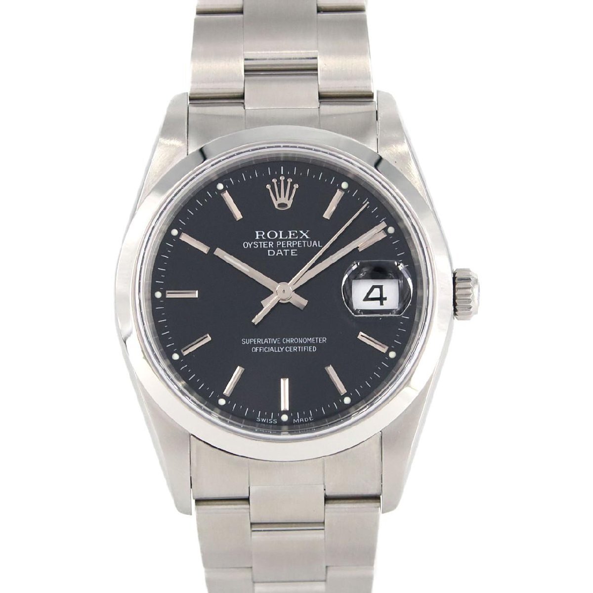 ロレックスは日付表示の有無でラインが分かれますが、こちらは日付表示のあるオイスターパーペチュアル。デイトジャストよりやや小さい34mmのサイズ感が、細身の男性におすすめです。