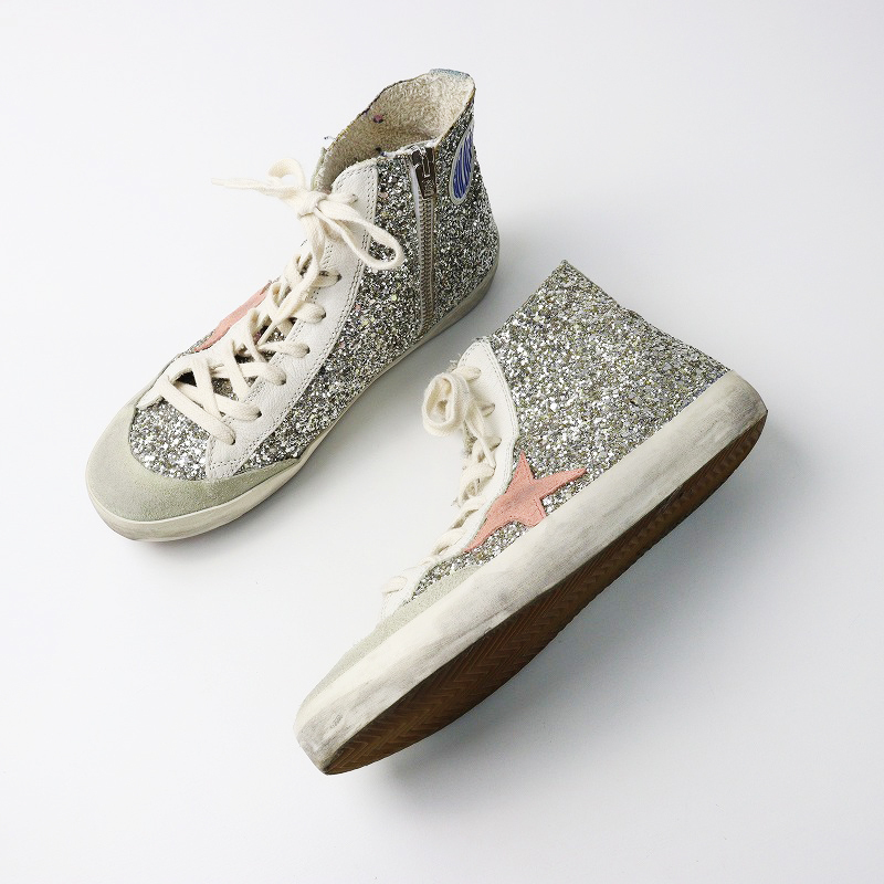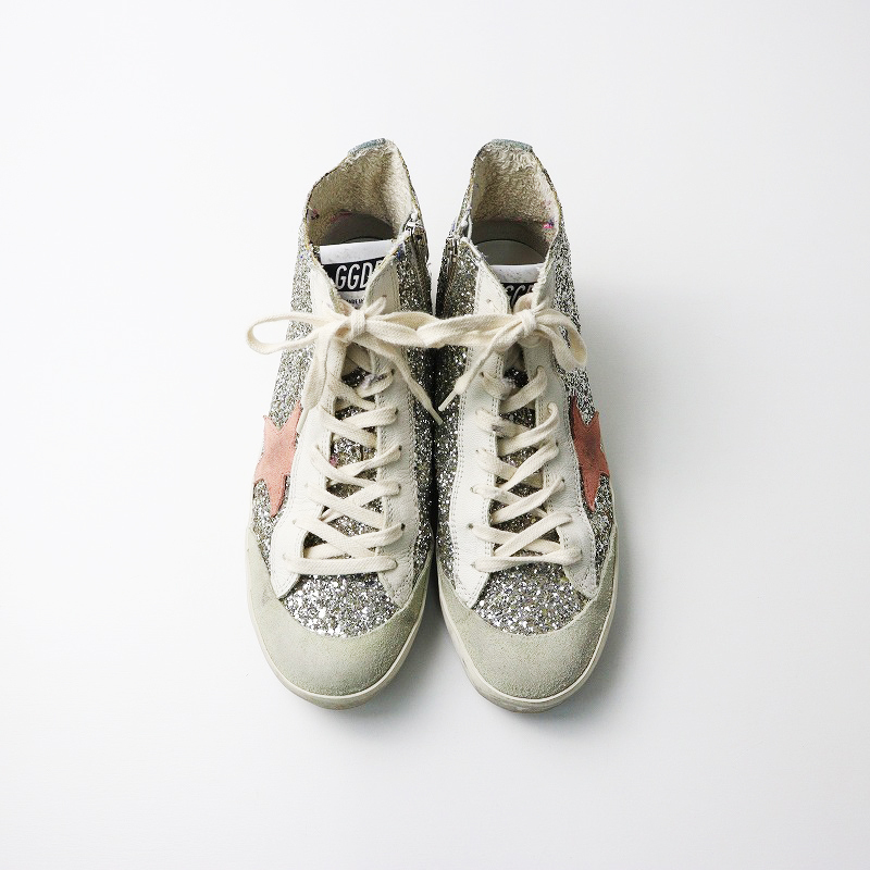 ゴールデングース GOLDEN GOOSE FRANCY PENSTAR CLLASSICS スパンコールハイカットスニーカー 39/シルバー【2400014360455】
