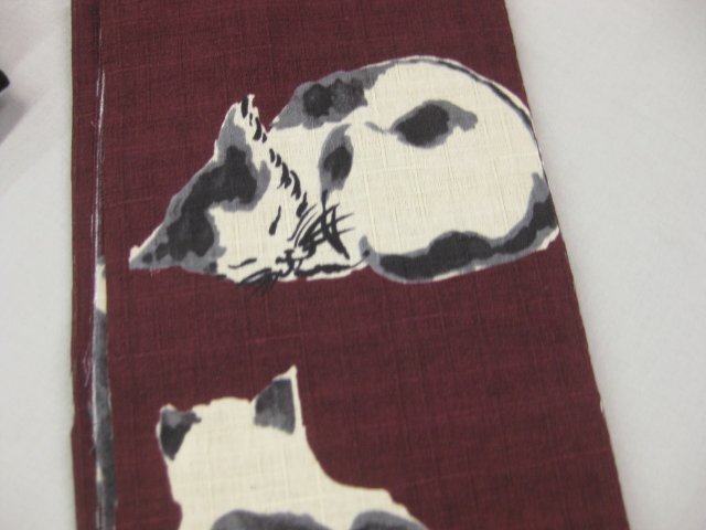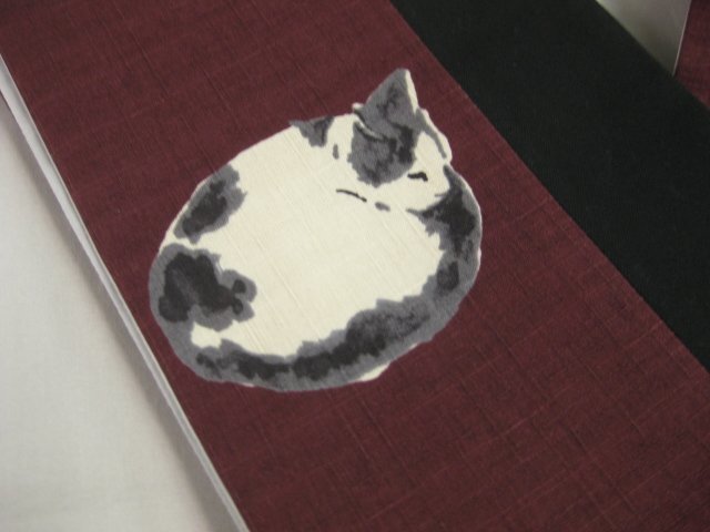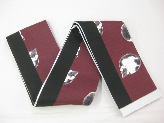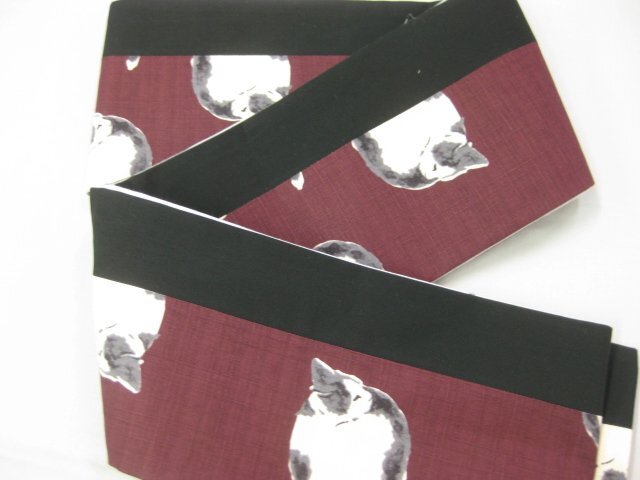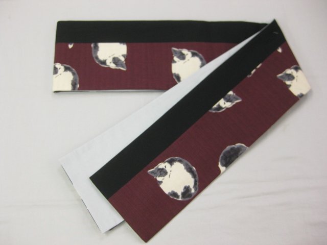 ■■レトロな感覚のねこ柄細帯(半幅帯)です■■