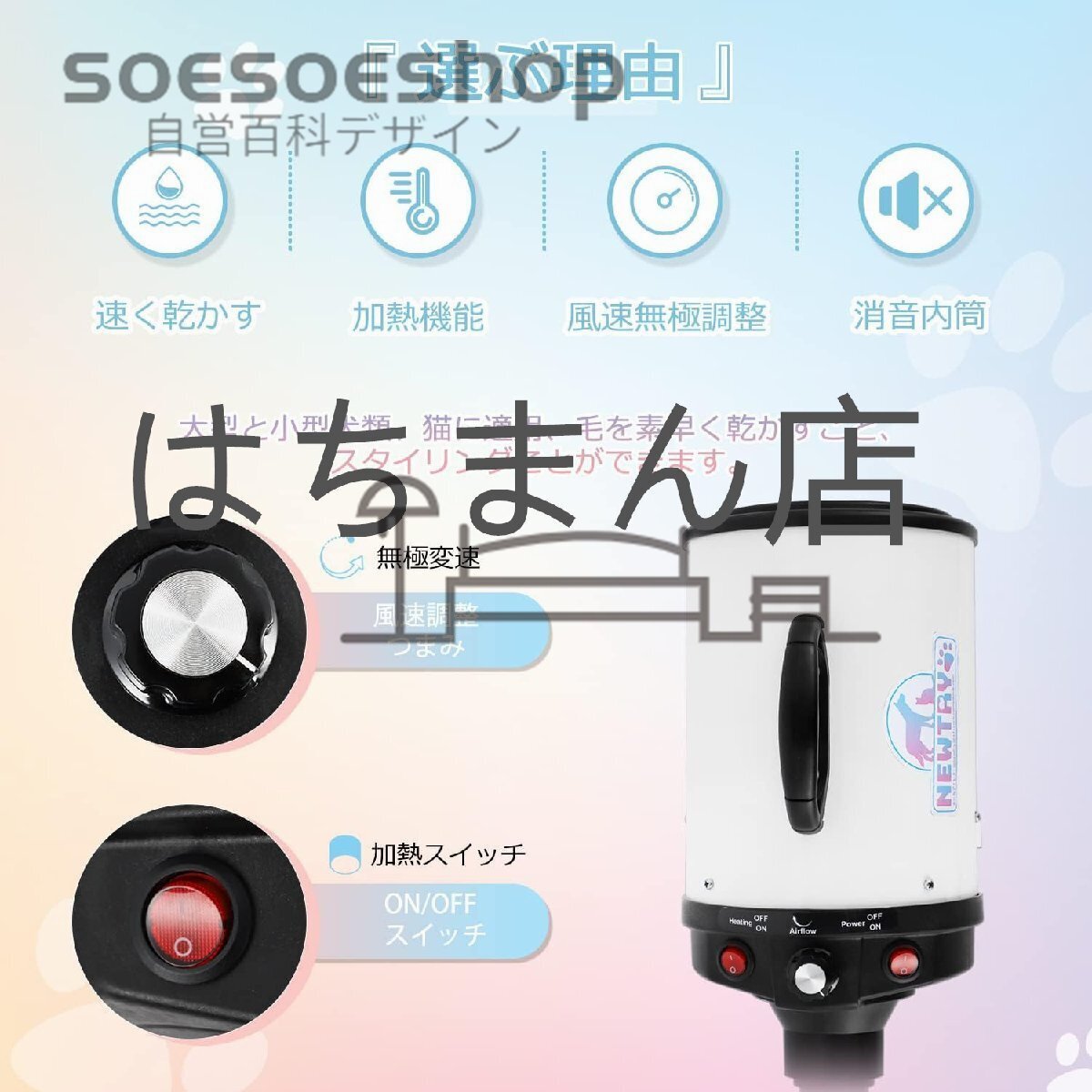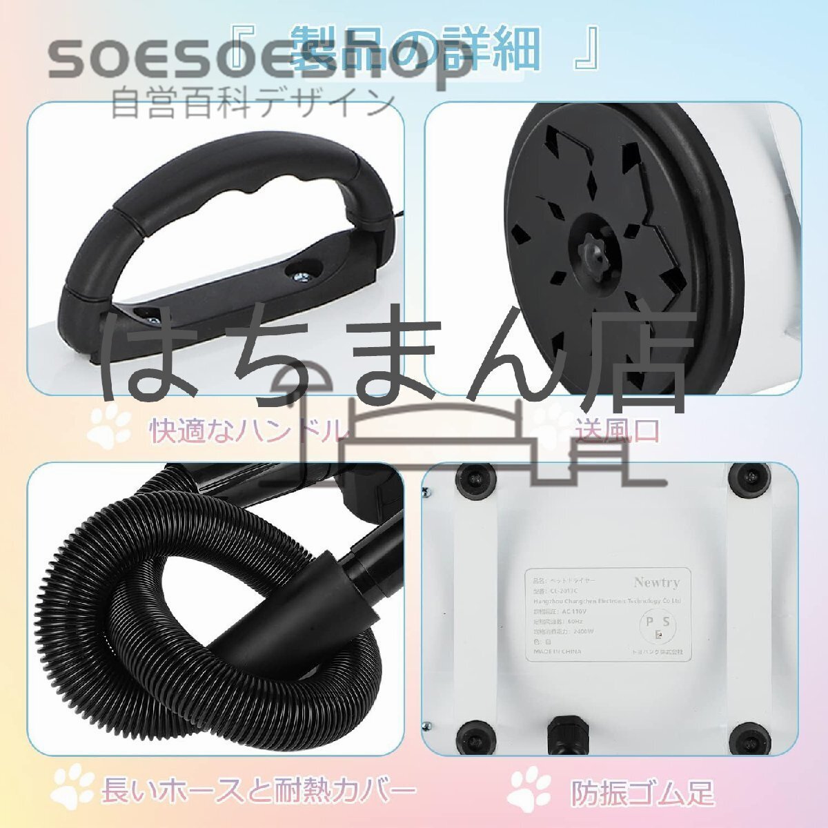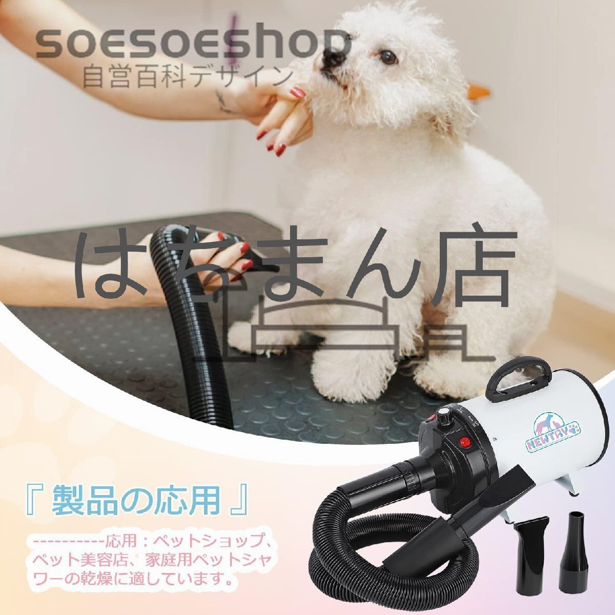 応用:ペットショップ、ペット美容店、家庭用ペットシャワーの乾燥に適しています。大型と小型犬類、猫に適用、毛を素早く乾かすこと、スタイリングことができます。店舗をご確認ください:はちまん店、他の同デザインは全て海賊版でございます、品質は保証されていません、慎重に購入してください。