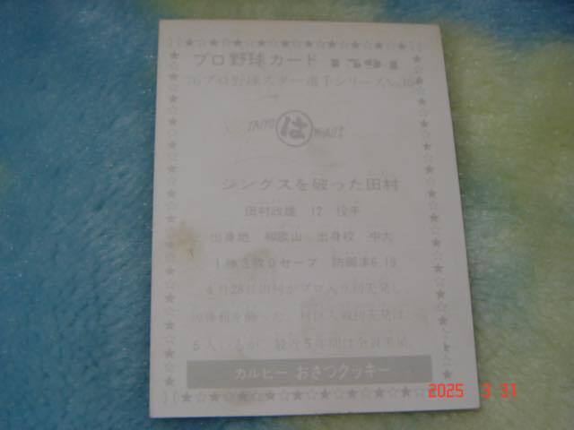 レア・ブロック カルビー76年プロ野球カード『'76プロ野球スター選手シリーズ』NO .1394 (田村/大洋) 黒版