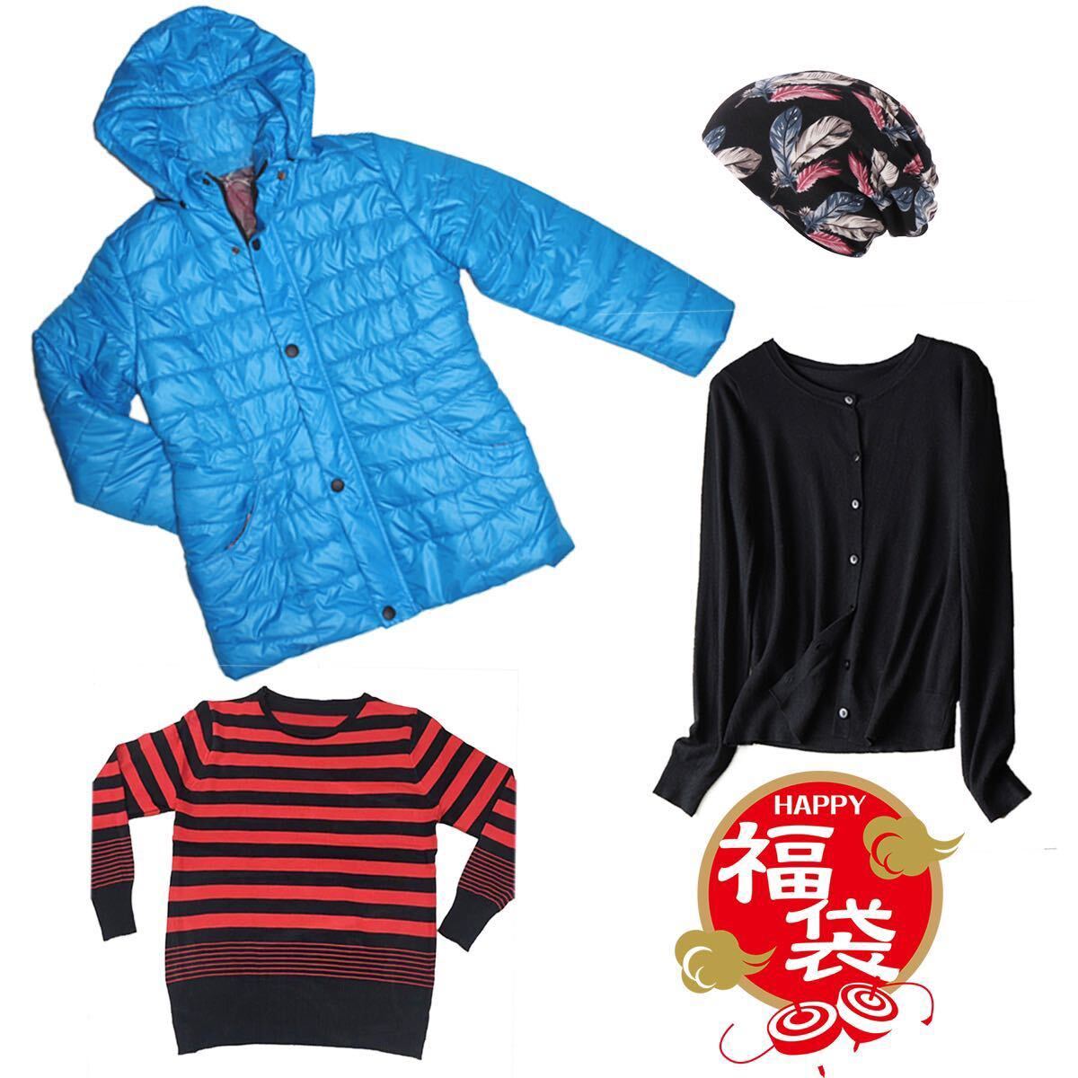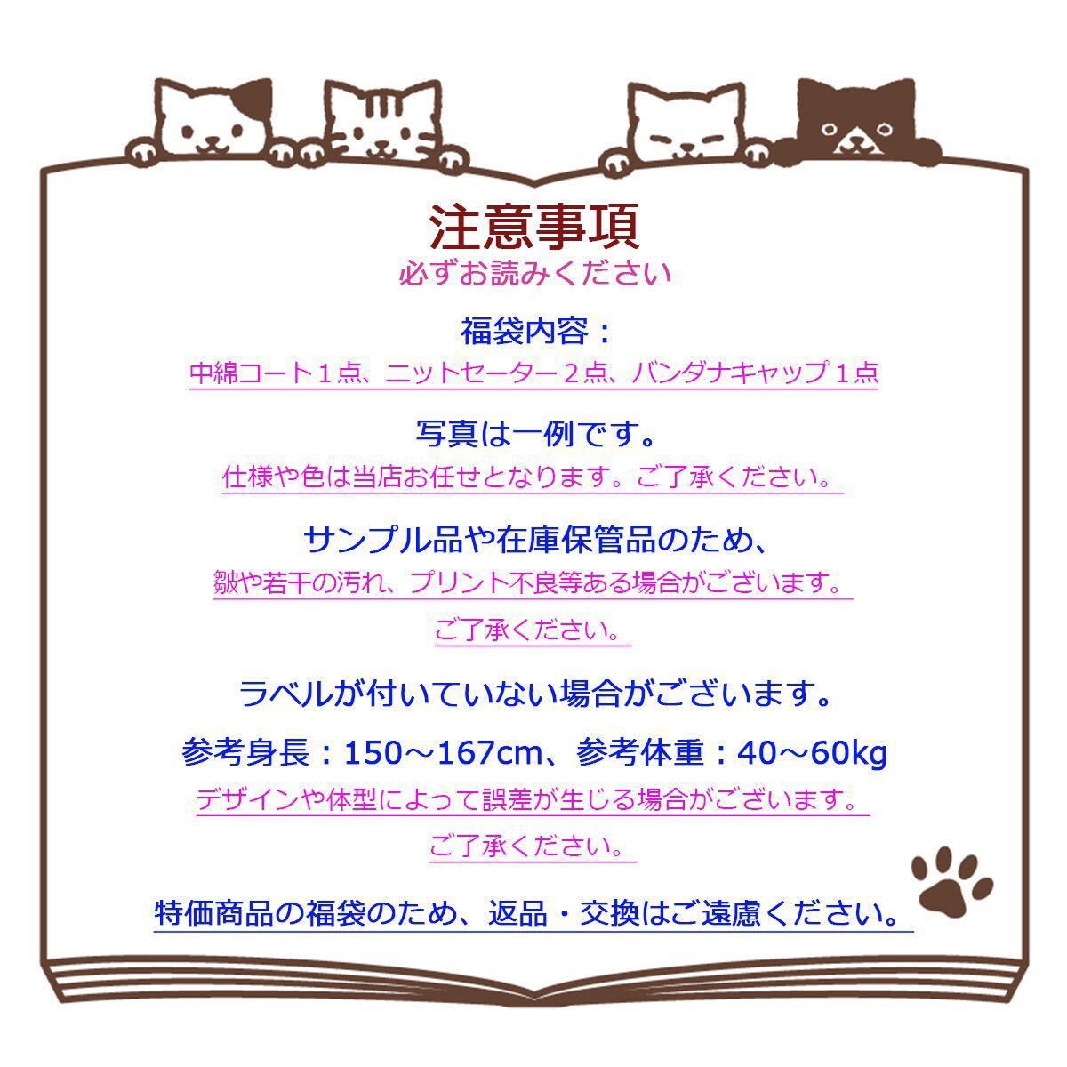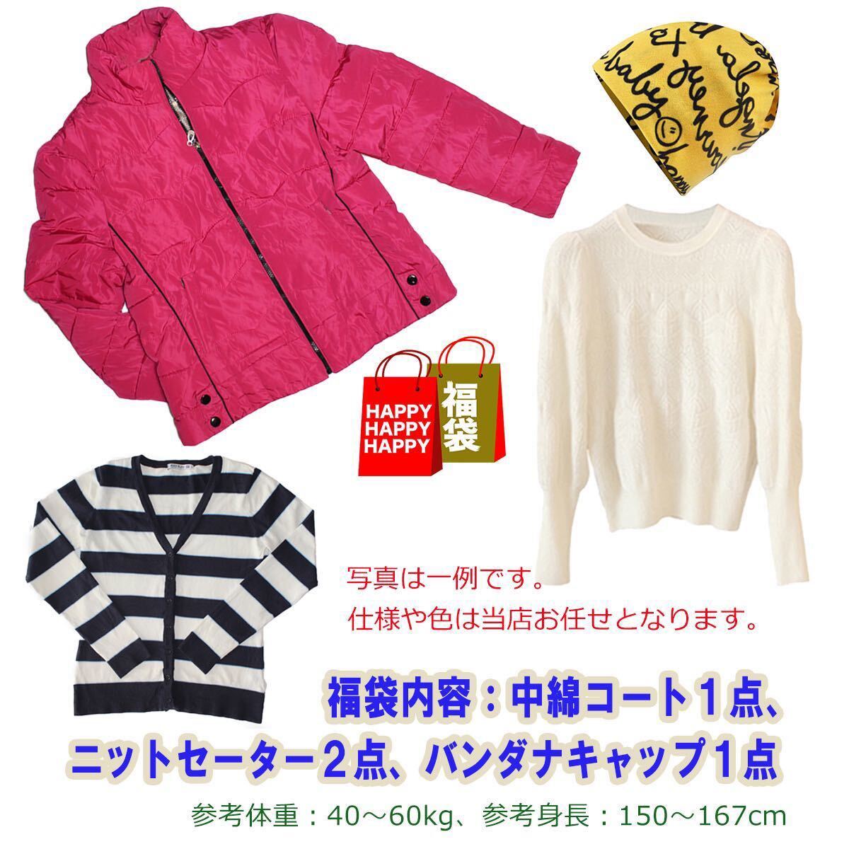 ※福袋内容(4点セット):中綿コート1点+ニットセーター2点+バンダナ―キャップ1点