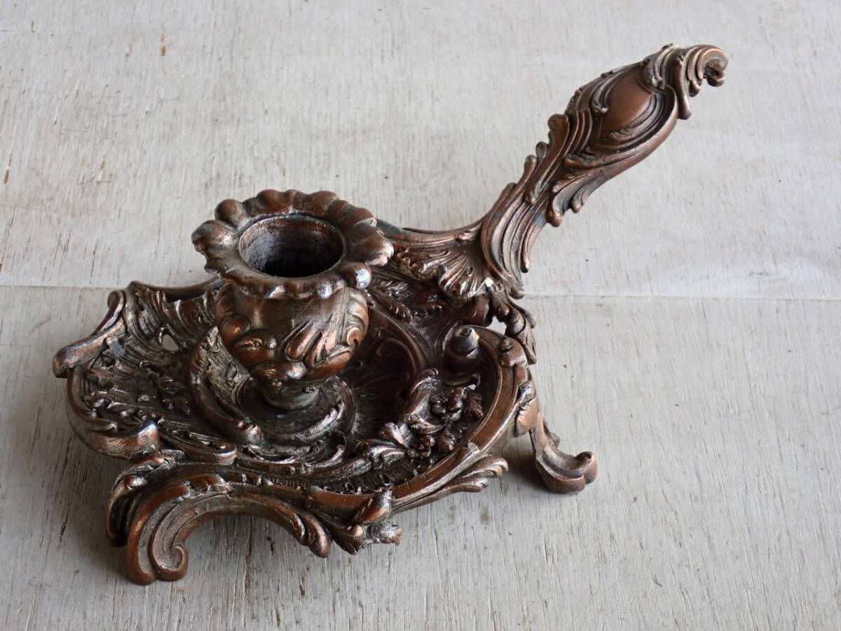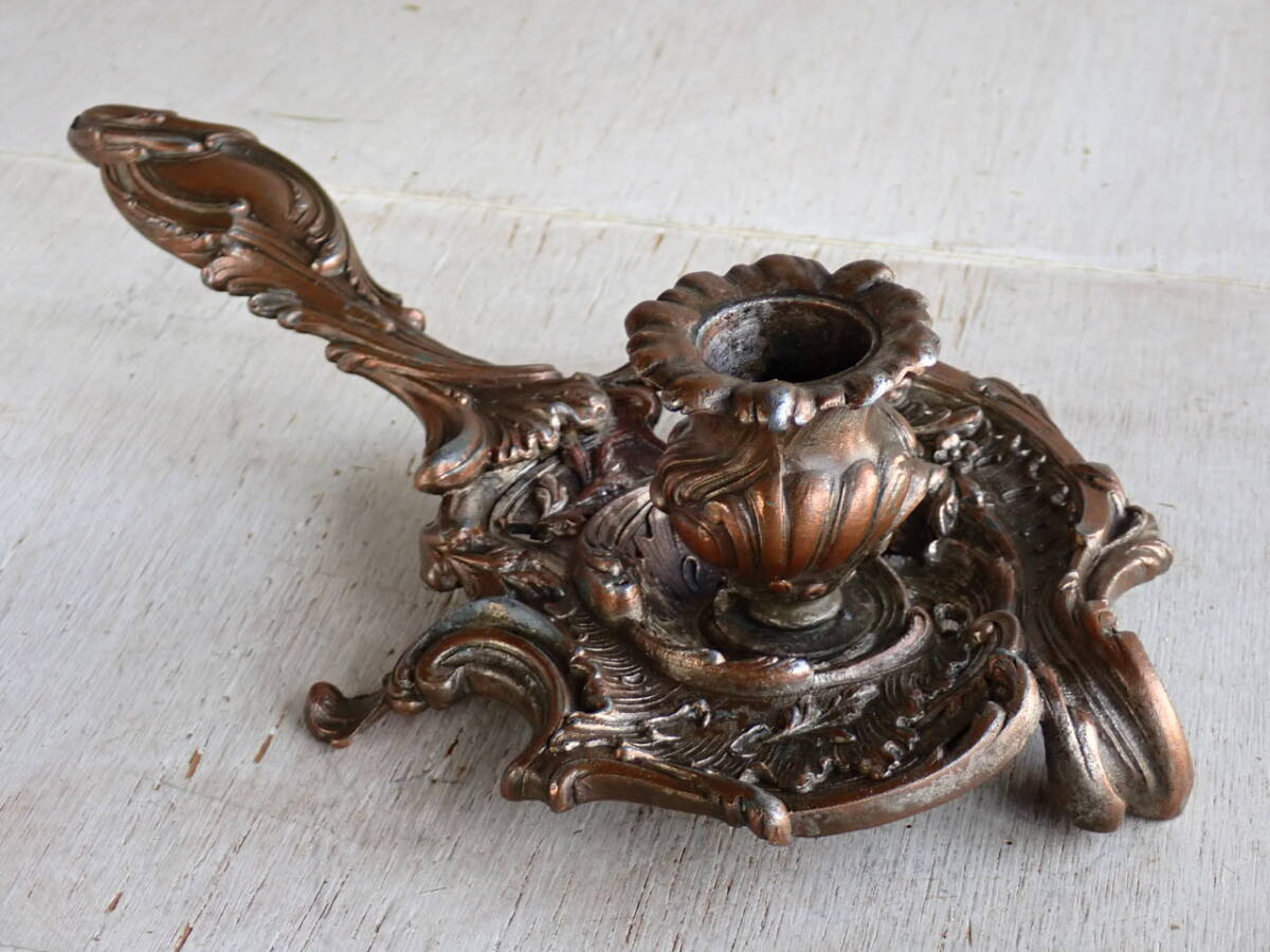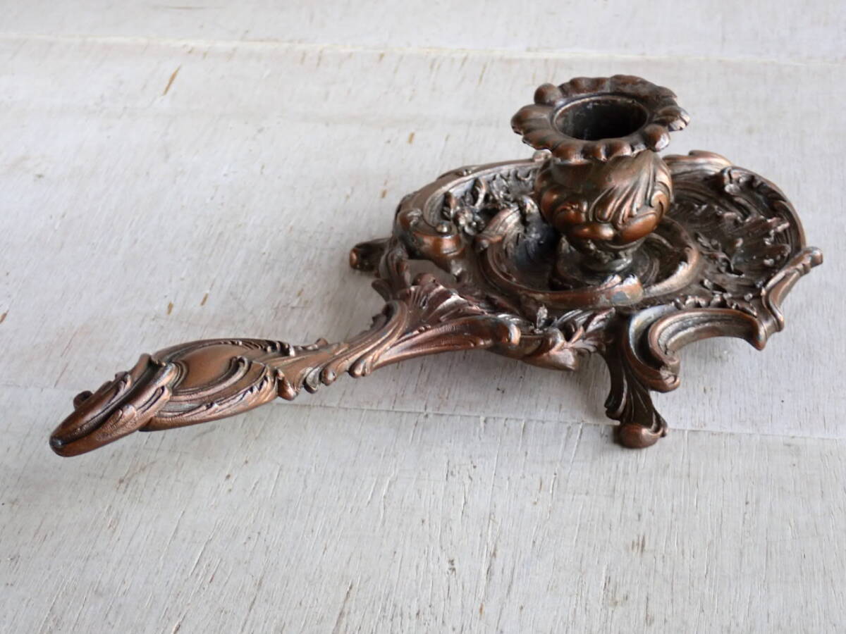 フランスアンティーク キャンドルスタンド 1880年 19世紀 持ち手付き ホルダー 蝋燭立て 燭台 ブロカント ゴールド