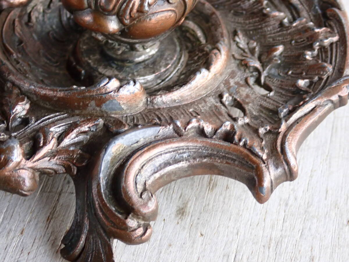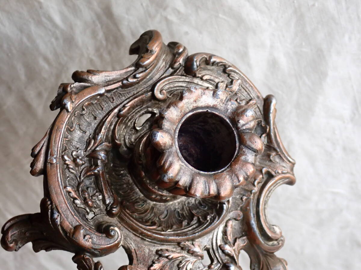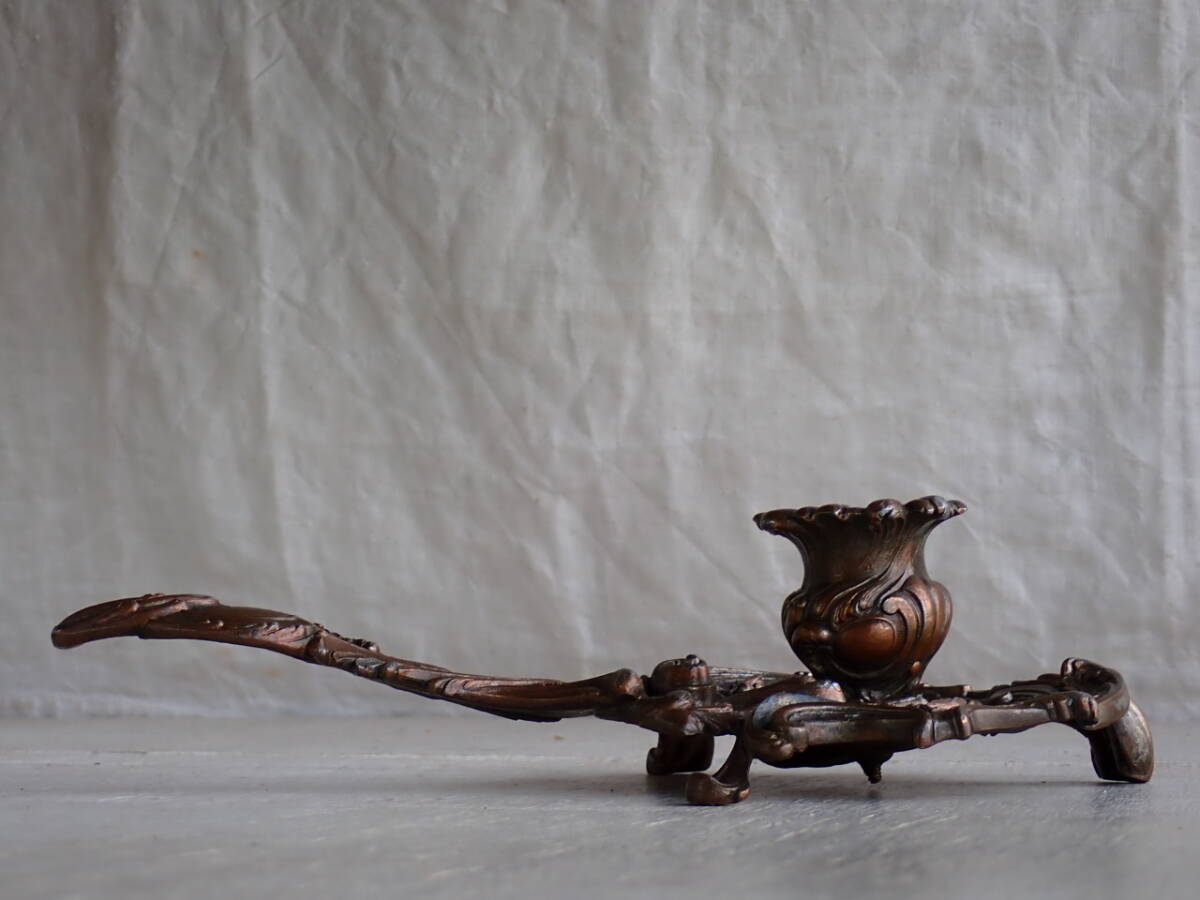 フランスアンティーク キャンドルスタンド 1880年 19世紀 持ち手付き ホルダー 蝋燭立て 燭台 ブロカント ゴールド