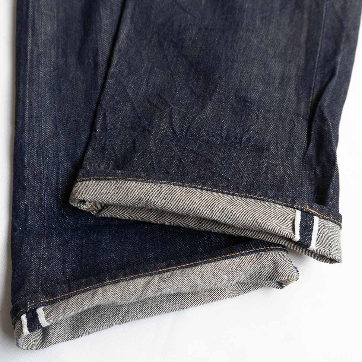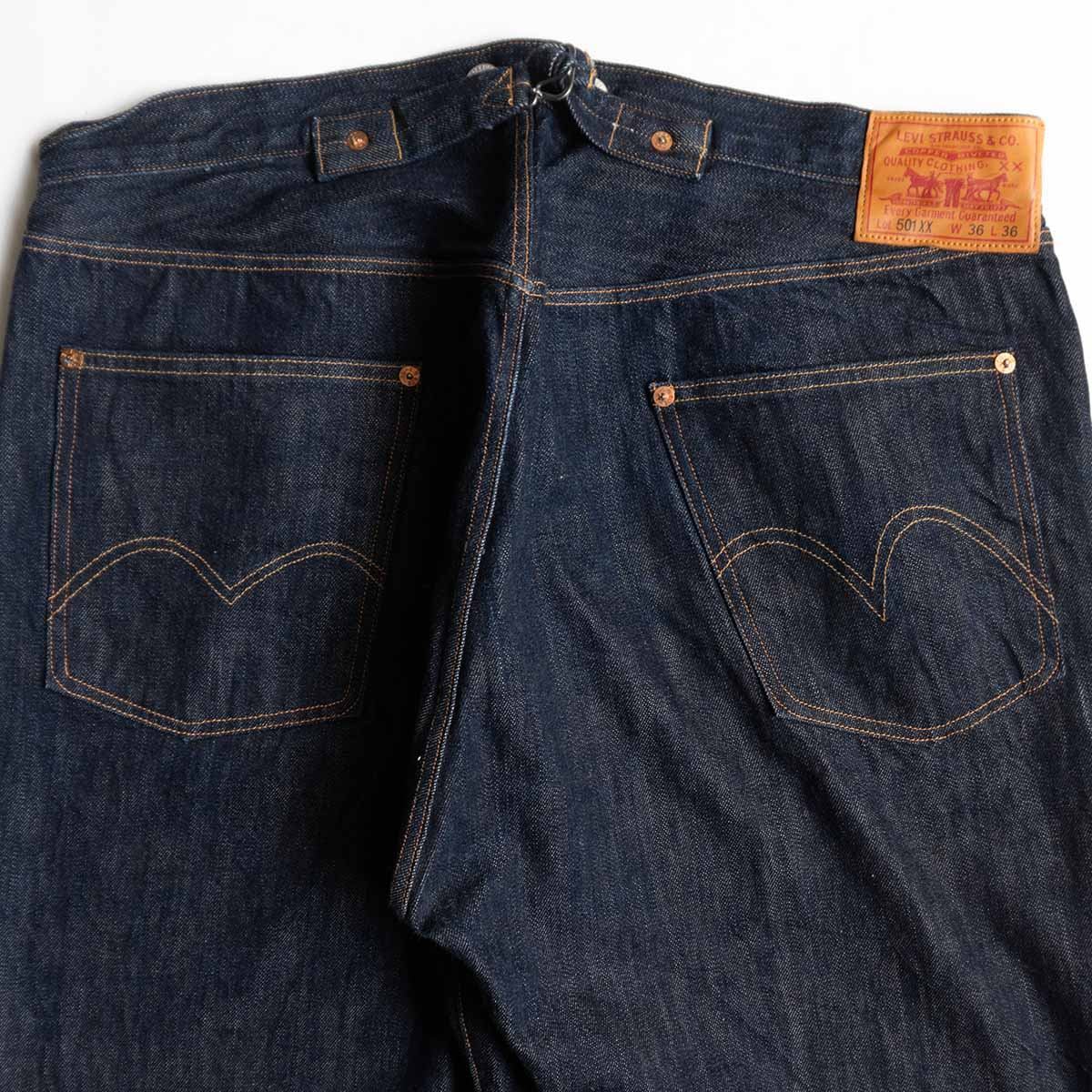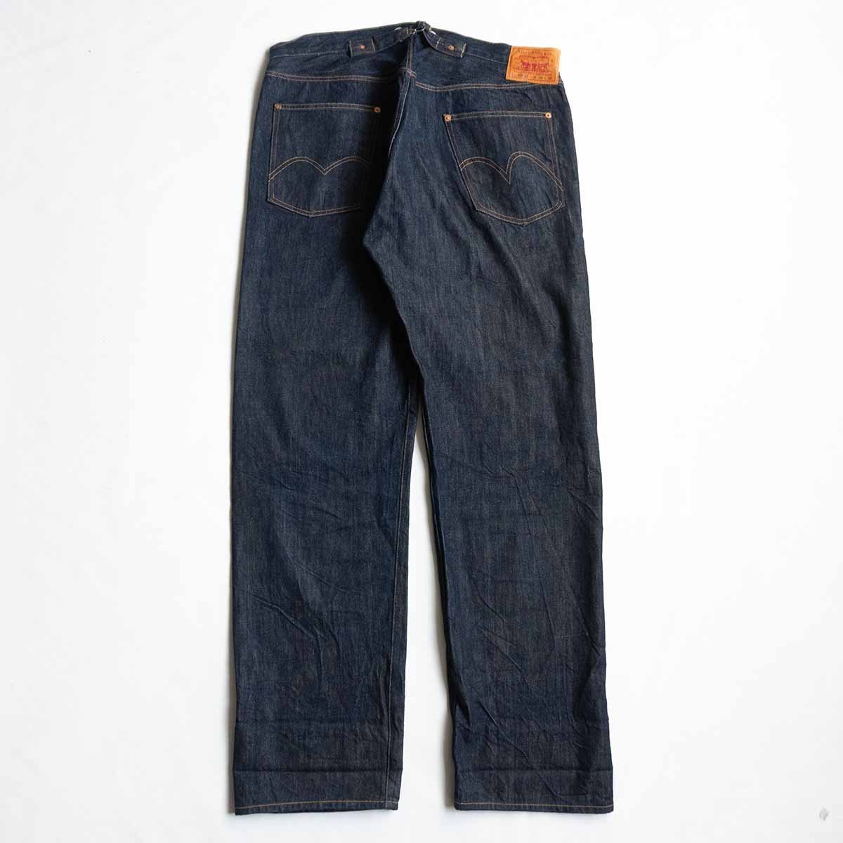 1915年当時のモデルを復刻。当時はまだベルトループは使用しておらず、サスペンダーかシンチバックでウエストを調整。生地はコーンミルズ社を使用する前でリーバイス社を示す赤耳では無く、白耳となっています。ウエストオーバーオールといわれた当時のシルエットも特徴的です。お探しの方や気になる方は是非。