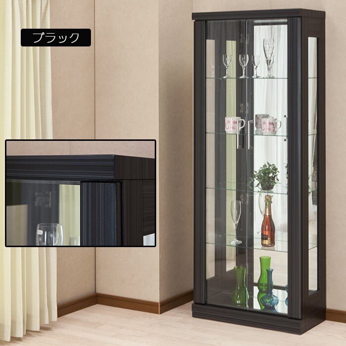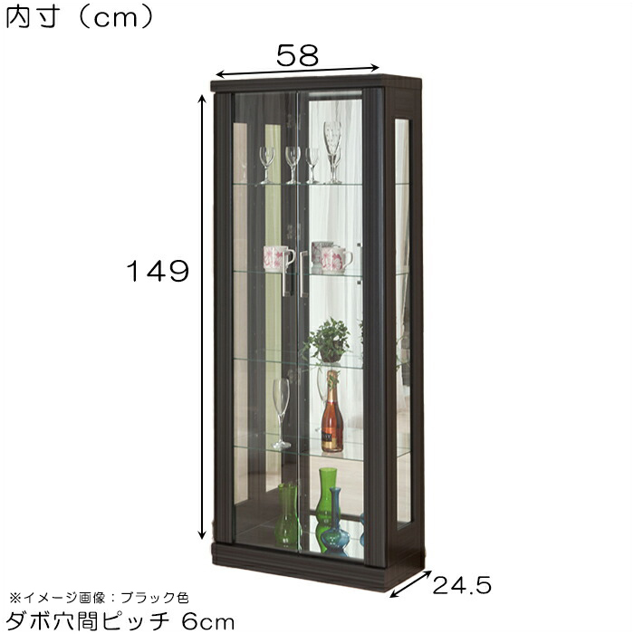 コレクションボード ショーケース ディスプレイケース 幅62cm ハイタイプ コレクションケース 収納 飾り棚 ブラック木目調