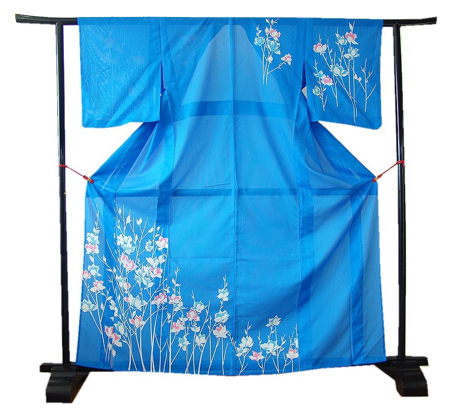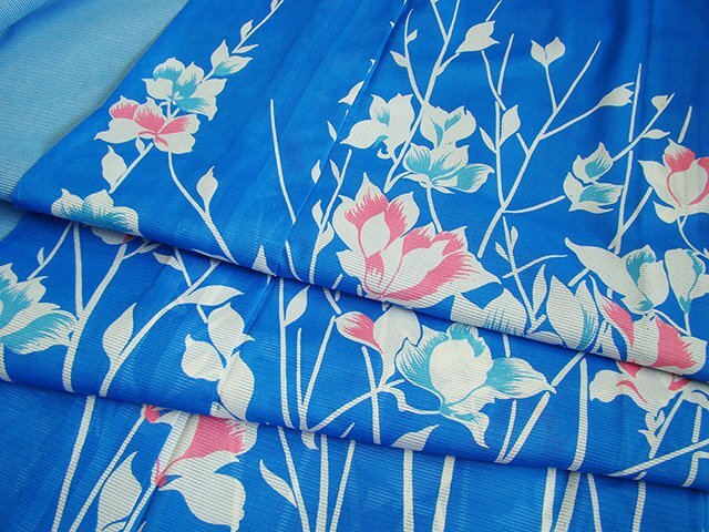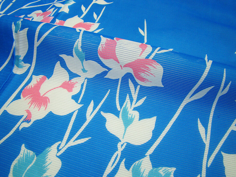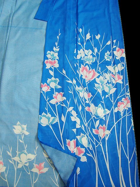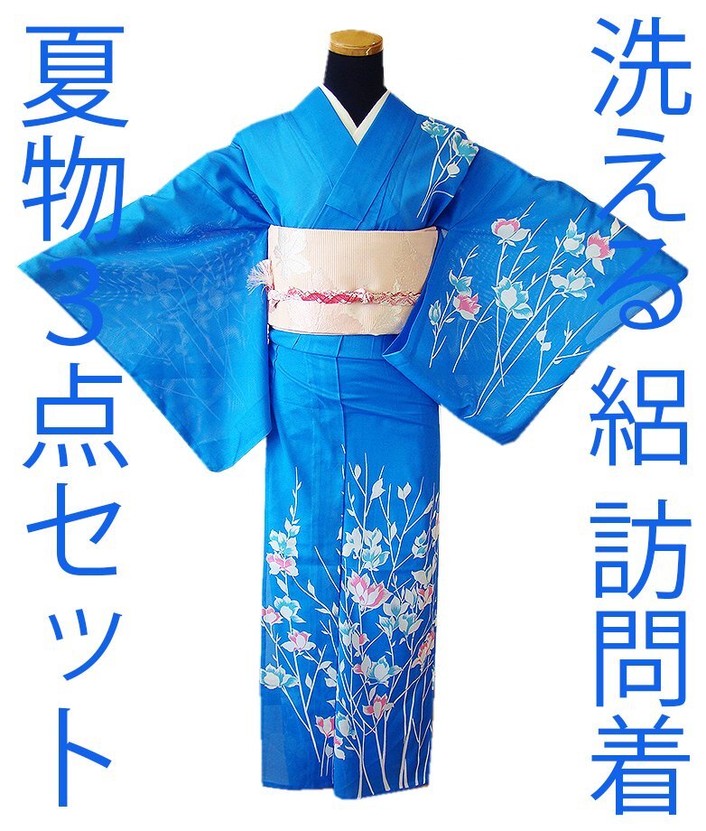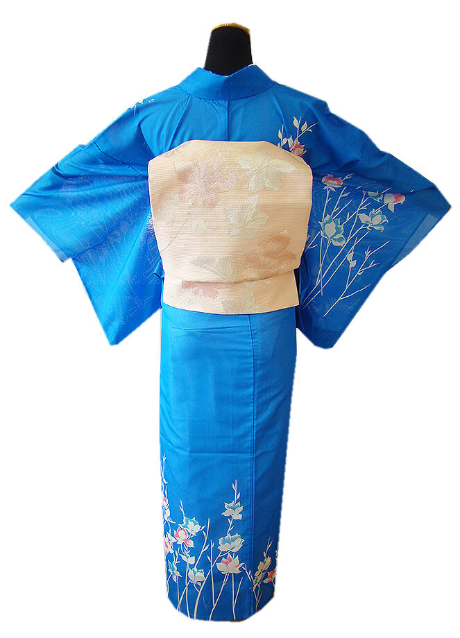 商品説明 | こちらのお品は夏物でございますので、7月~8月にお召頂ければと思います。 「絽」と言えば、紗と双璧を成す夏のお着物の生地で、 その最大の魅力は絶妙の透かし加減でございます。 清涼感溢れる地の風を通すしなやかさは夏に着物を着るという贅沢を 快適に愉しませてくれる事でしょう。 着物には、大きく分けて「袷(あわせ)の着物」と「単衣(ひとえ)の着物」と「夏着物」があります。 反物(表地)を着物に仕立てるときに、裏地類をつけるものを袷の着物、 つけないものを単衣の着物と呼び、胴裏や八掛といった裏地がつかない一枚ものの着物です。 また裏地がないため、座る時などにヒップのラインが目立たないよう、 居敷当て(いしきあて)の生地をつけることもあります。 居敷当ては付いておりません。 しなやかな手触りの滑らかなさらっとした肌触りは絹と間違ってしまいそうな「絽」の 洗える高級ポリエステルの生地で涼やかな風合いを醸しております。 明るい紺碧色地に白、ピンク、水色の花草柄の染柄が美しい着物姿を演出しております。 また、バチ衿仕立てとなっております。 帯はポリエステルの袋帯(六通柄)でしなやかで扱い易く〆易く、 石竹色地に銀糸等の花草柄の織柄が上品な帯姿を奏でております。 帯〆は平組、白、赤紅色の編み込みの組紐となっております。 |
