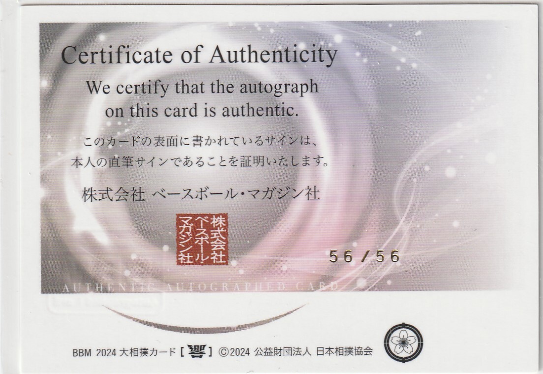 パックから出る直筆サインカードでシリアルナンバーが入っています。シリアルナンバーは56/56のラストナンバーです。スキャナーの埃や縦線が写っている場合がありますが現物は美品です。