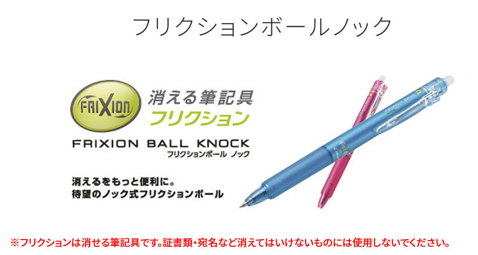 待望のノック式フリクションボールが遂に登場。手帳や資料の書き込みにスピーディに使えます。