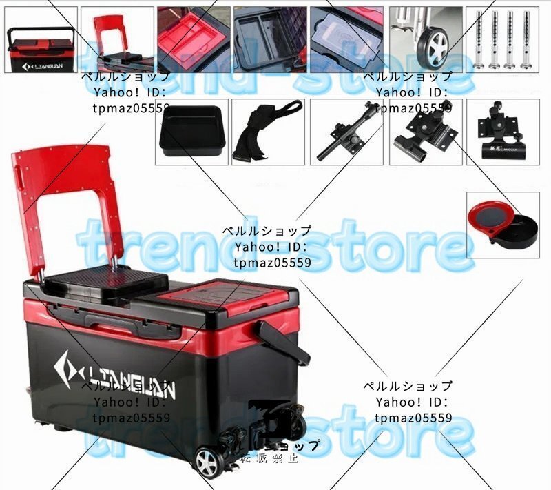 大容量 保冷 クーラーボックス ケース タックルボックス 釣り フィッシング 昇降可能 隠れた背もたれ 持ち運びが簡単 昇降可能 40L ホイー
