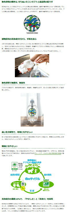 ・洗浄成分は、人と地球にやさしいヤシの実由来の植物性。 香料や着色料などは一切無添加。 そんな“人と地球にやさしい”ヤシノミ生活、あなたもはじめてみませんか?ヤシノミシリーズは、ヤシの実由来の植物性。人と地球へのやさしさを考えて、香料や着色料などは一切無添加。