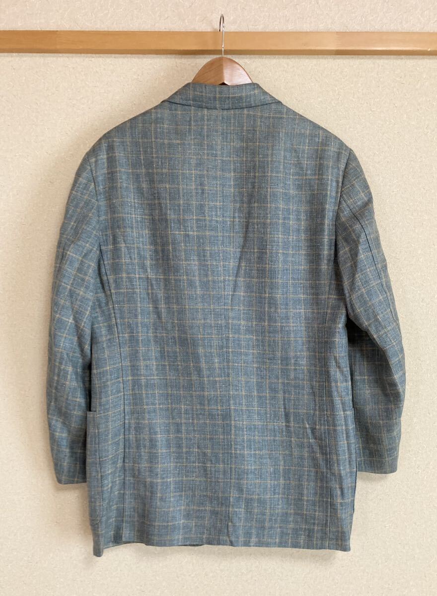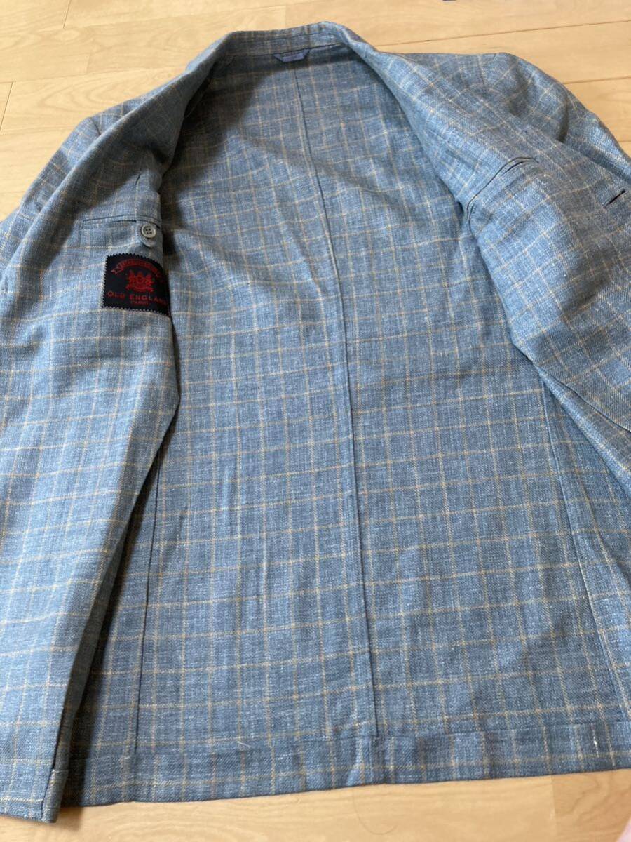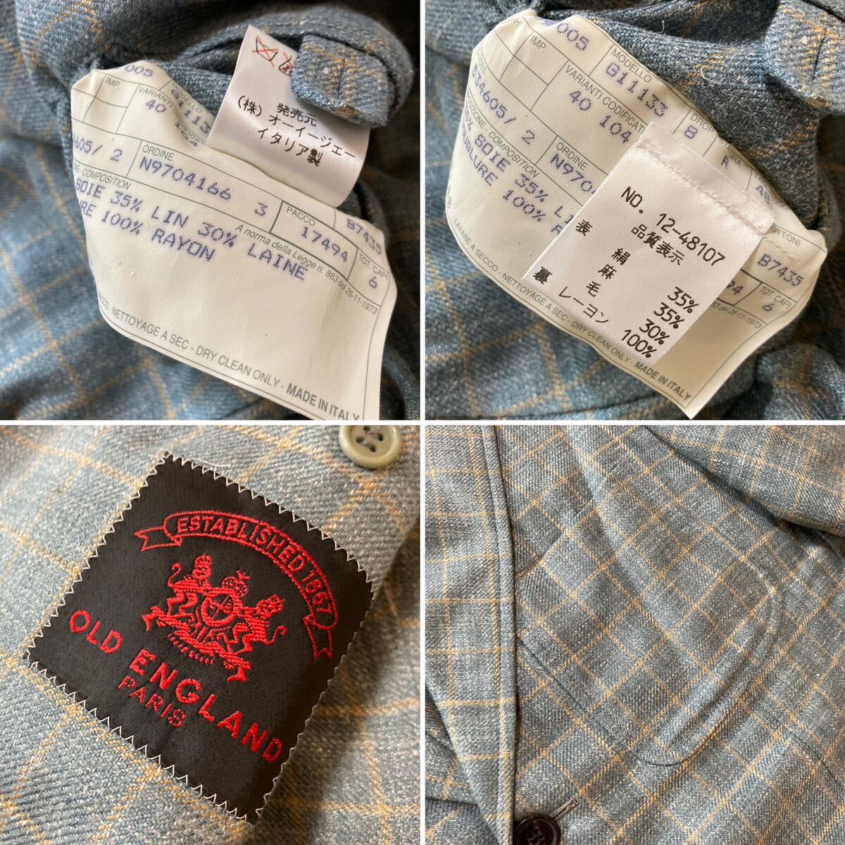 美品☆[OLD ENGLAND PARIS] シルク×リネン×ウール 格子柄 テーラードジャケット 48 絹 イタリア製 オールド イングランド