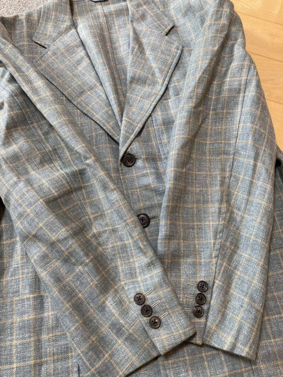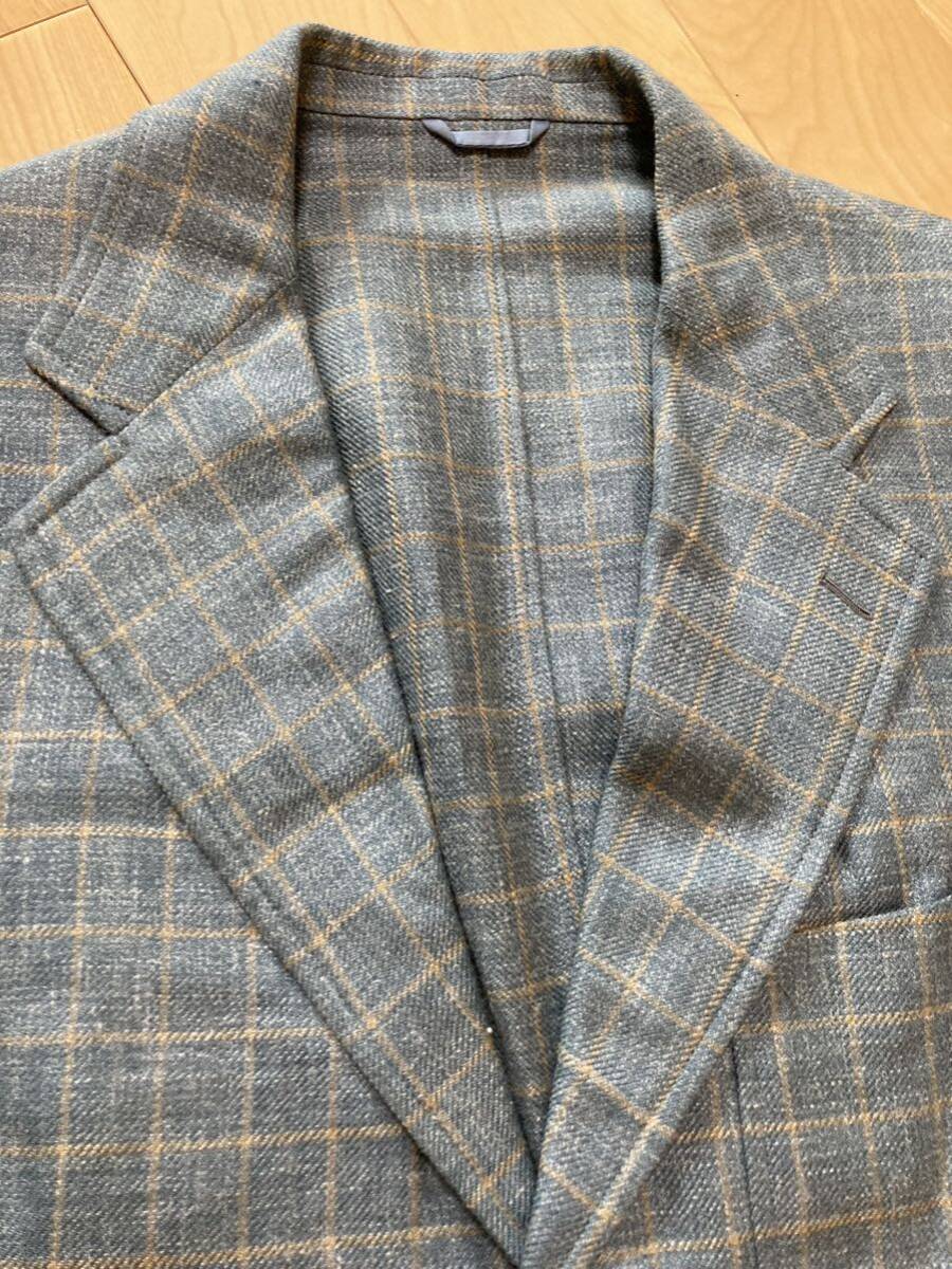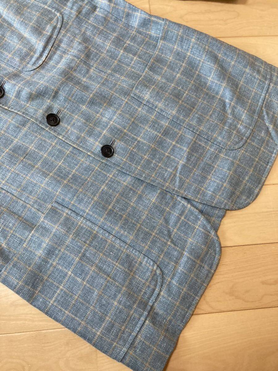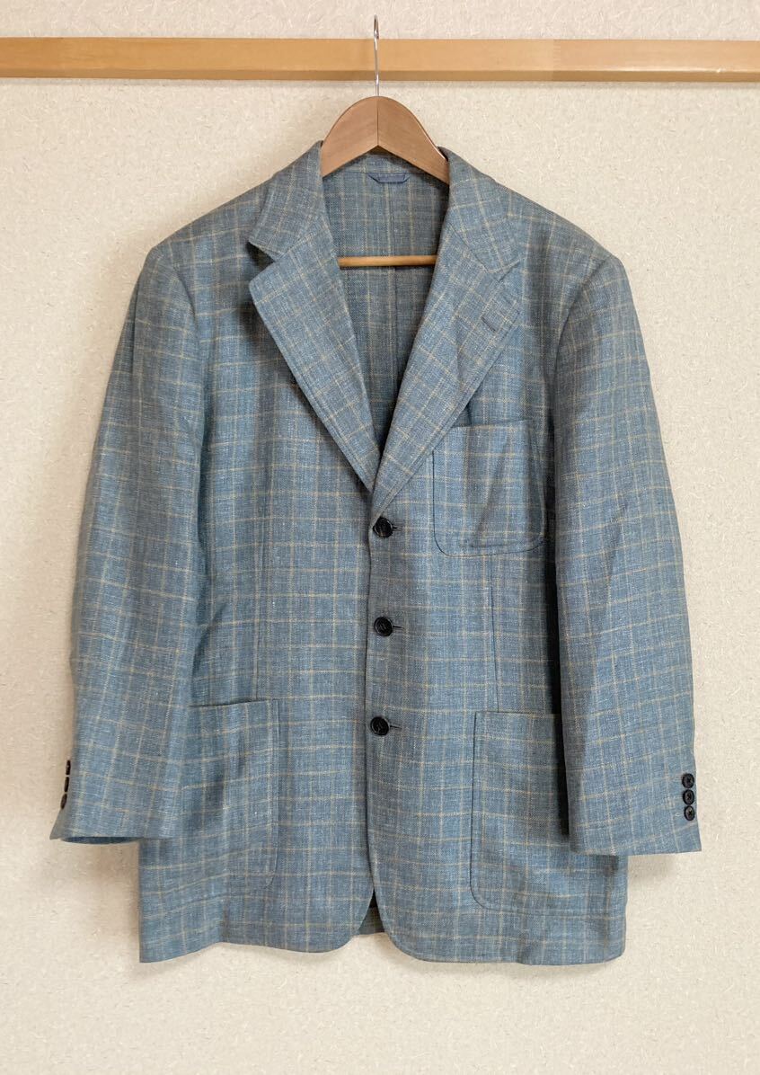 美品☆[OLD ENGLAND PARIS] シルク×リネン×ウール 格子柄 テーラードジャケット 48 絹 イタリア製 オールド イングランド