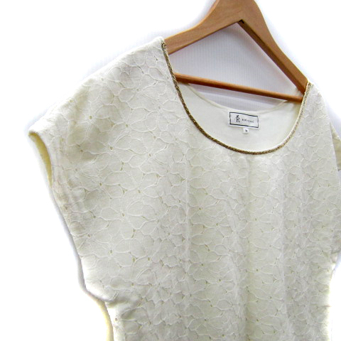 ロペピクニック ROPE Picnic ブラウス カットソー 半袖 ラウンドネック 花柄 総レース 38 M オフホワイト /SY43 レディース