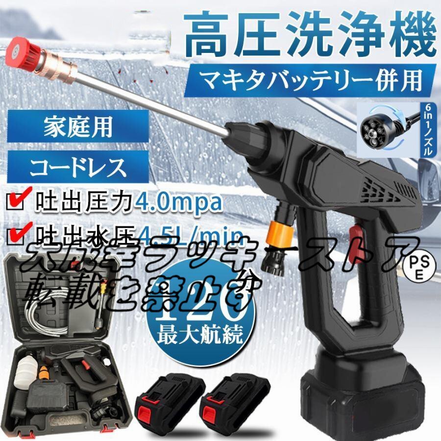 高圧洗浄機 コードレス 充電式 マキタバッテリー互換 4.0MPa 大容量バッテリー2個付き ポータブル 洗車 ガン 自吸式 強力噴射 軽量