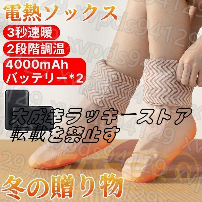 電熱ソックス 発熱ソックス 電熱靴下 4000mAhバッテリー2個付 ヒーター ソックス 足温器 2段階調温 3秒速暖 冬用の加熱靴下 寒さ対策 贈物