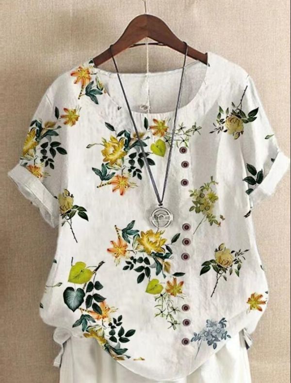 人気推薦 / 夏新作 ブラウス 花柄 ゆったり 着痩せ カジュアル 通勤 大きいサイズ きれいめ プリント 半袖 トップス チュニック / 柄3