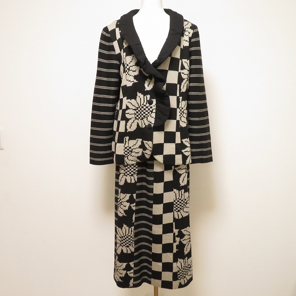 | 実寸サイズ | (トップス)肩幅約 40cm・袖丈約 60cm・着丈約 59cm・胸囲約 51cm×2 (スカート)ウェスト約 32cm×2・スカート丈約 82cm(スリット丈約 9cm) |