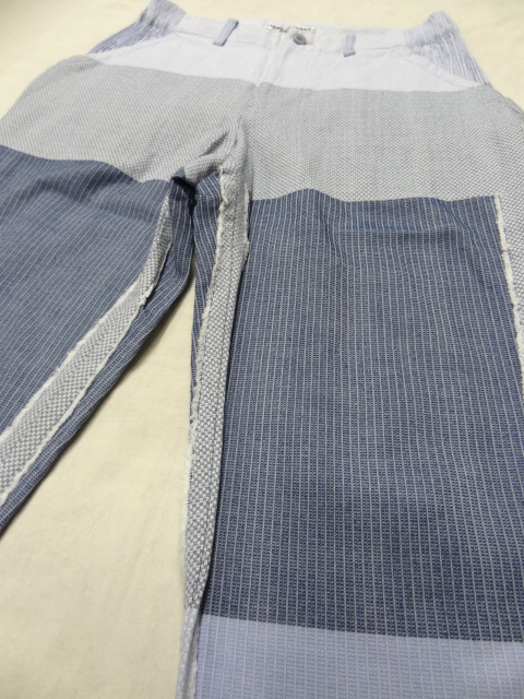ISSEY MIYAKE イッセイミヤケ 刺し子 プリーツ サイド ライン ブルー グラデーション カラー パッチワーク デザイン スラックス パンツ 青