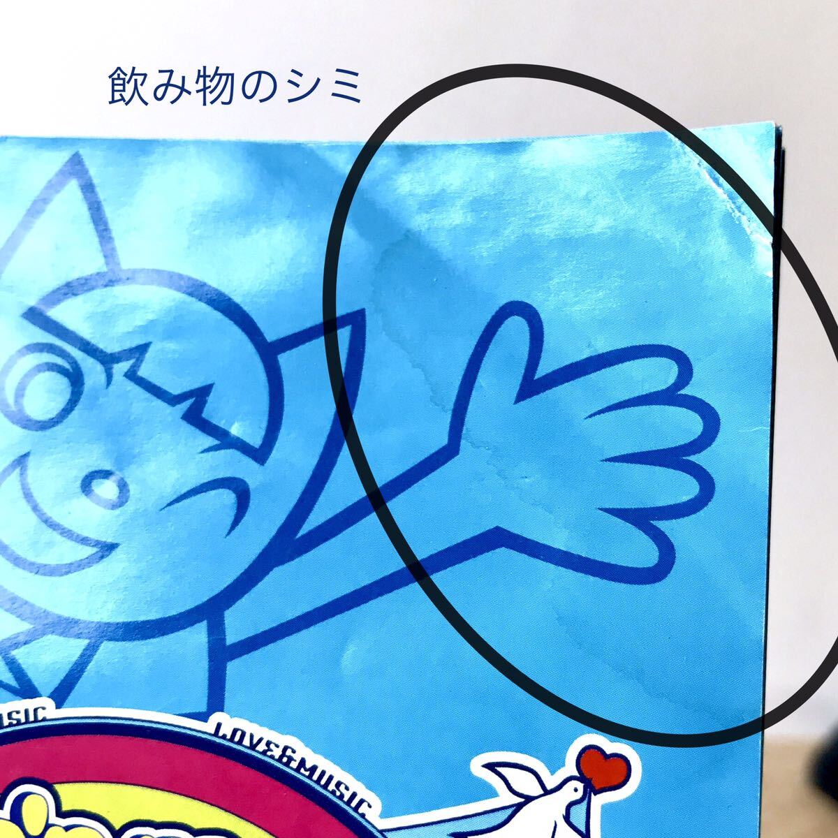 説明書右上に飲み物のシミ。
