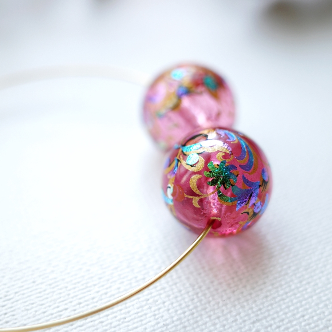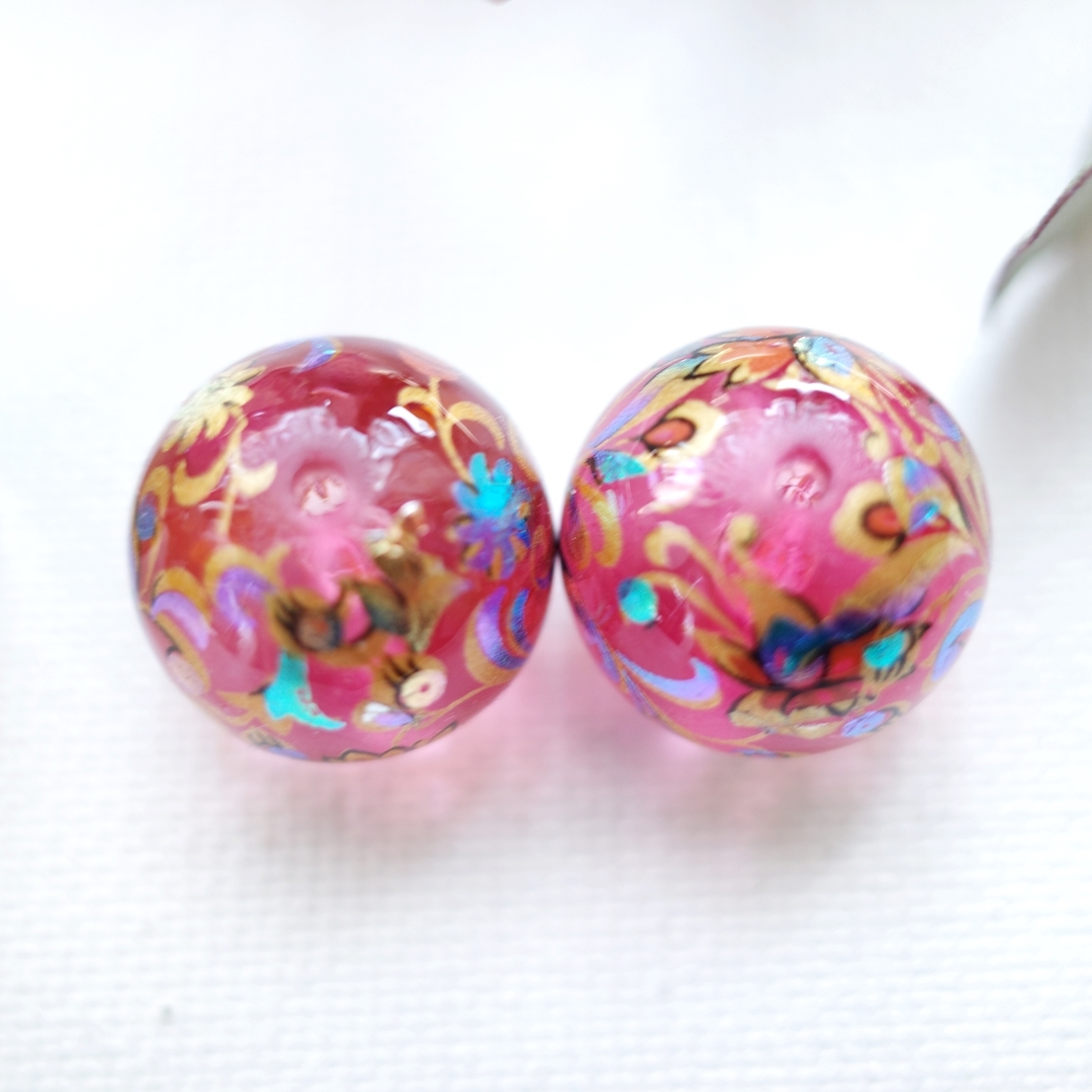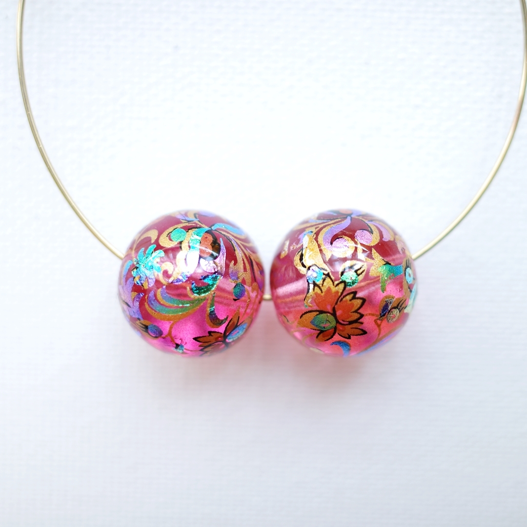 | アクリル素材のビーズにキレイな模様がプリントされたビーズです☆ かんざしの素材にしたり和服、浴衣のアクセサリーパーツに使えます とても存在感も雰囲気も素敵なパーツです。 直径1.6㎝ 2個での出品になります ※他のモノとのおまとめ発送で最高でも185円(クリックポスト)でおまとめできますのでほかのものも是非ご覧ください! | |||
