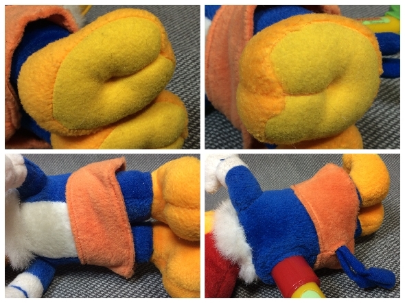 〇ぬいぐるみの手からプラスチックのハンドルのはしまでの全長が約33.5cm。
