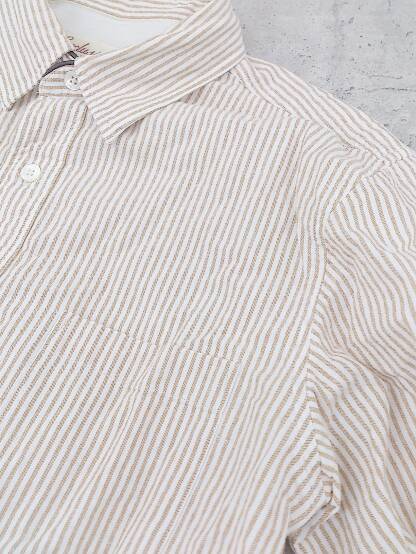 ◇ JOURNAL STANDARD ジャーナルスタンダード ストライプ 長袖 シャツ サイズS ホワイト ブラウン系 メンズ