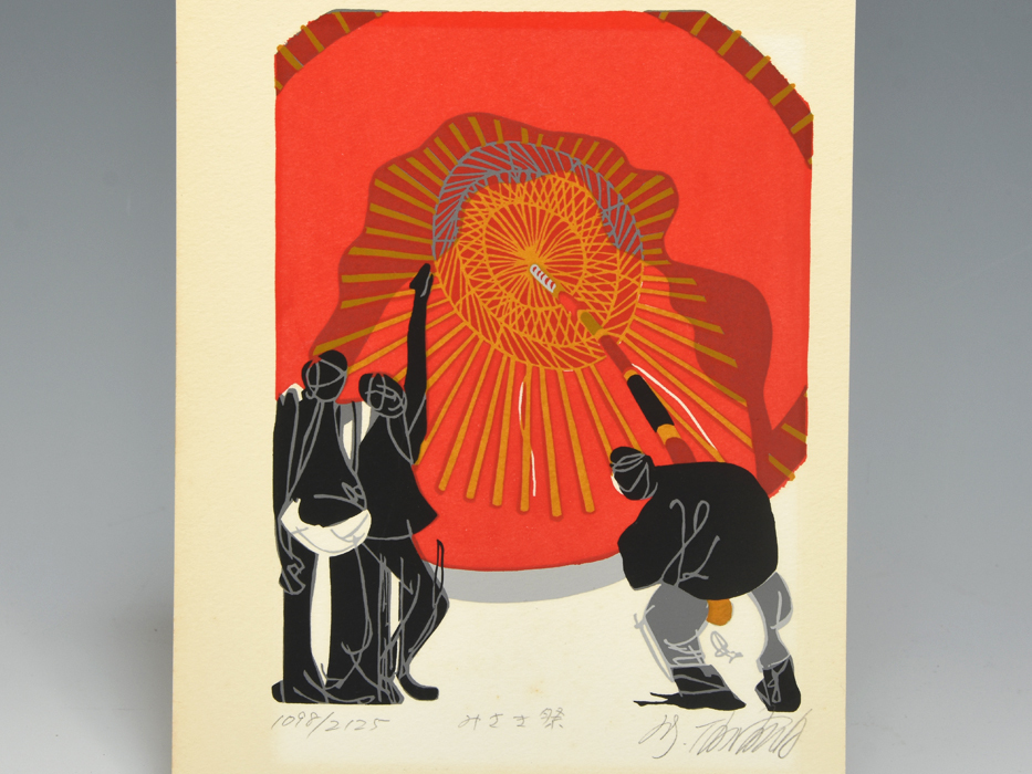 【真作】 田中正秋 シルクスクリーン 「みさき祭」 1098/2125 鉛筆サイン 版画 絵画 アート インテリア |