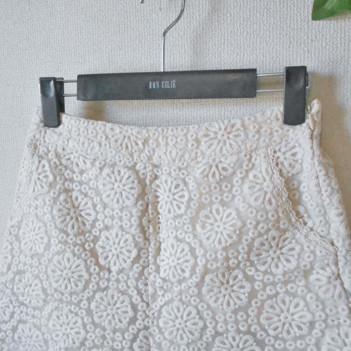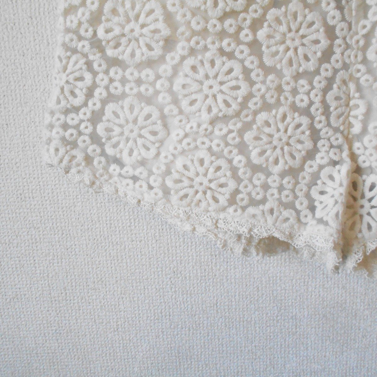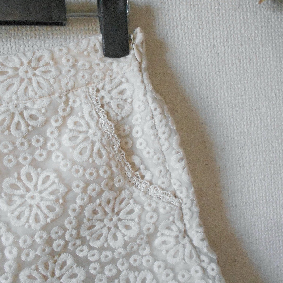 オーガンジーのような生地に刺繍が入っていて、裾とポケット部分にはレースが使用された、とっても可愛いデザインです。