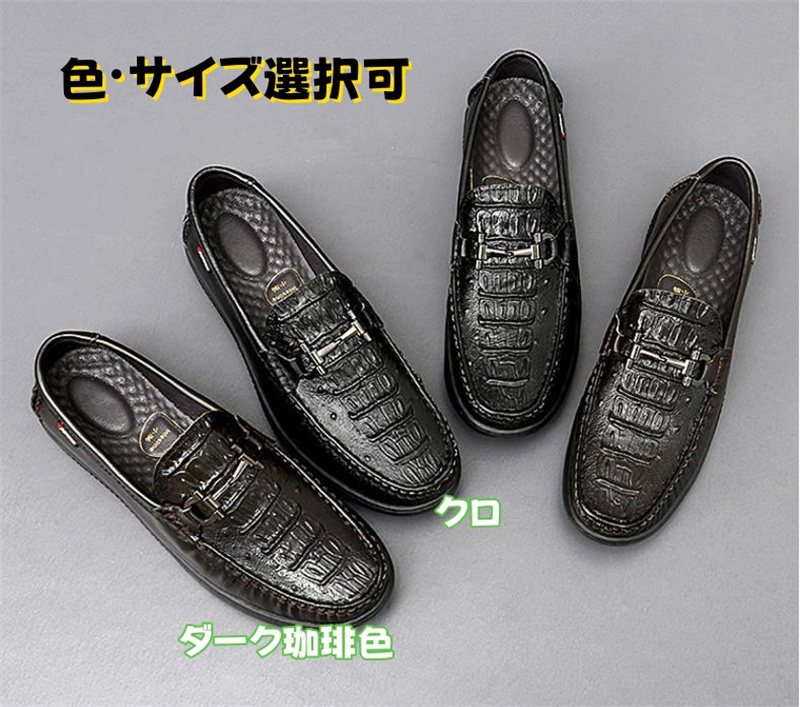ローファー スリッポン メンズ*新品 紳士靴 男性靴 カジュアル ワニ柄 ドライビングシューズ【19052】ダーク珈琲色 【24cm-27cm選択】