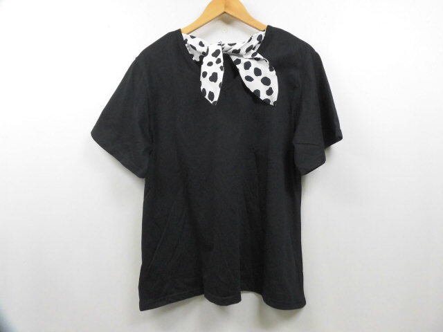 RODEO CROWNS ロデオクラウンズ ドット柄 リボン 胸ポケット デザイン 半袖 Tシャツ トップス 水玉 ロゴ刺繍 ブラック 黒 フリーサイズ