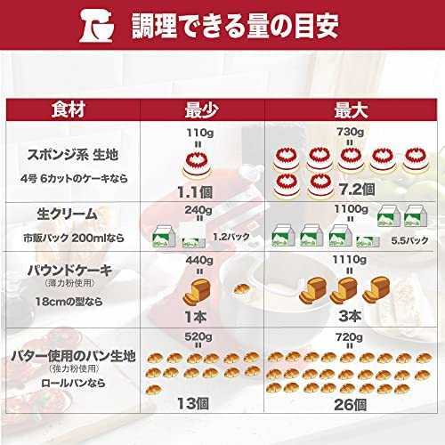 付属品:ステンレスボゥル4.8L・ワイヤーホイップ、ドゥーフック、平面ビーター、注入用カバー、フードグラインダー(FGA)、