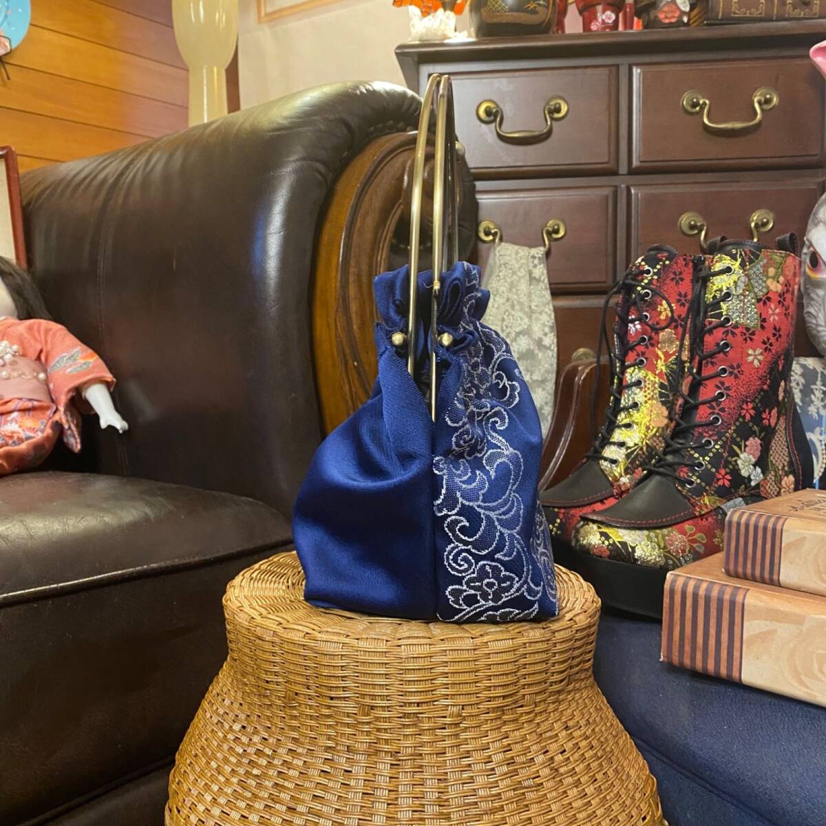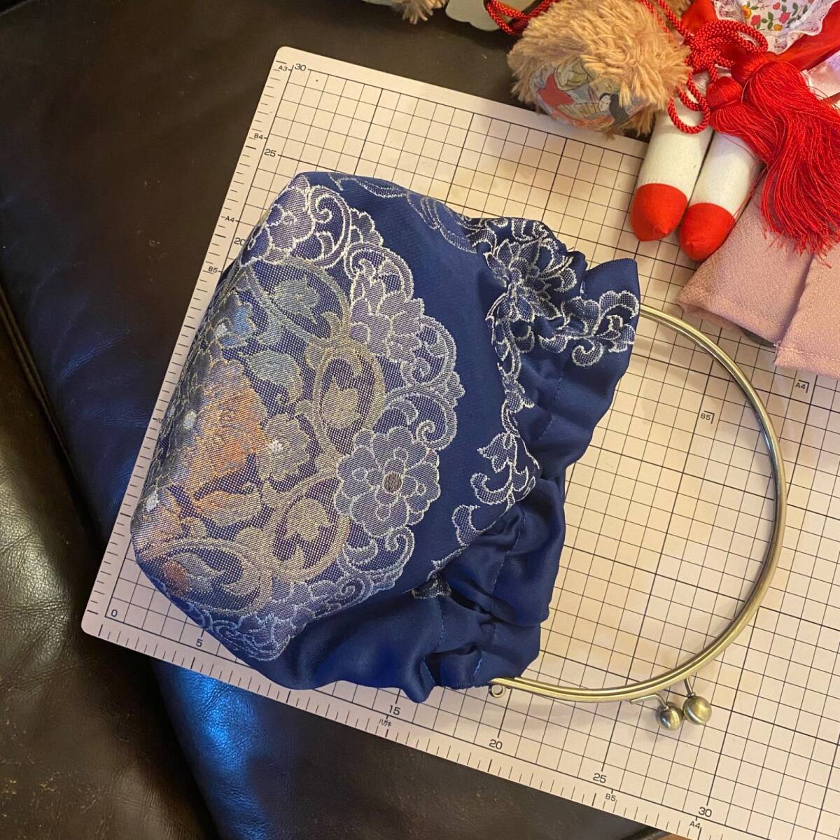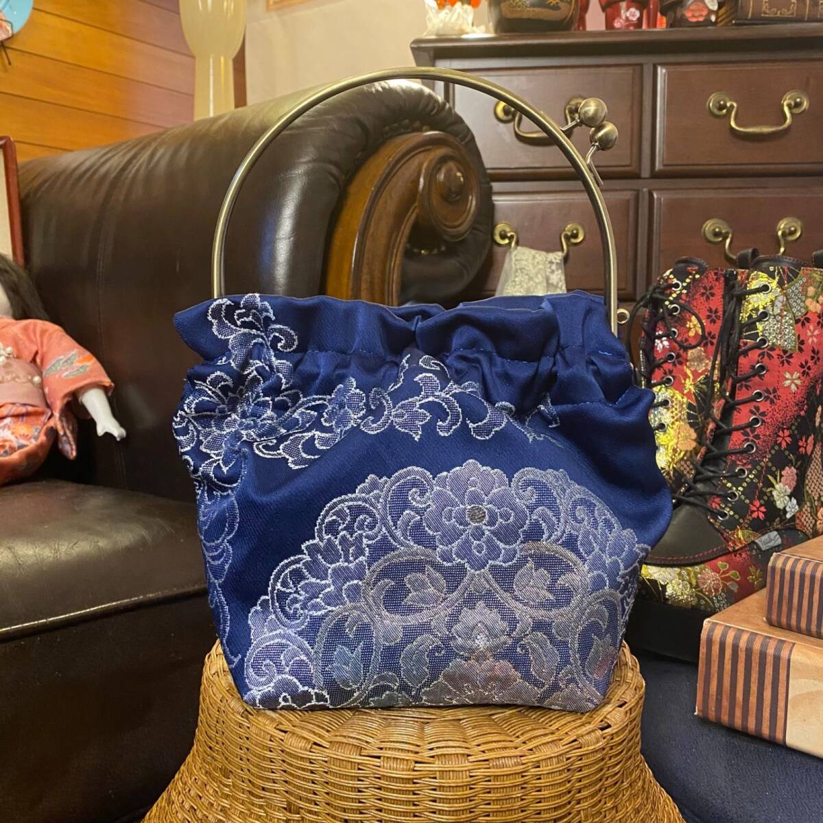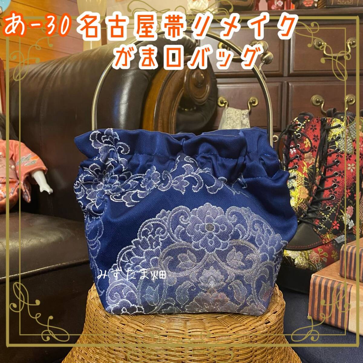 【 和洋折衷 名古屋帯リメイク ハンドバッグ ハンドバック がま口 ガマ口 ベンリー 口金 レトロ クラシカル ハンドメイド あ‐30】