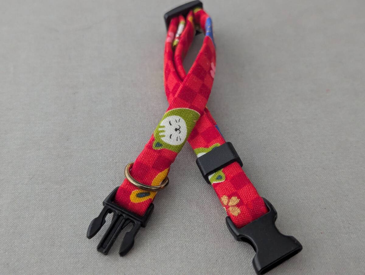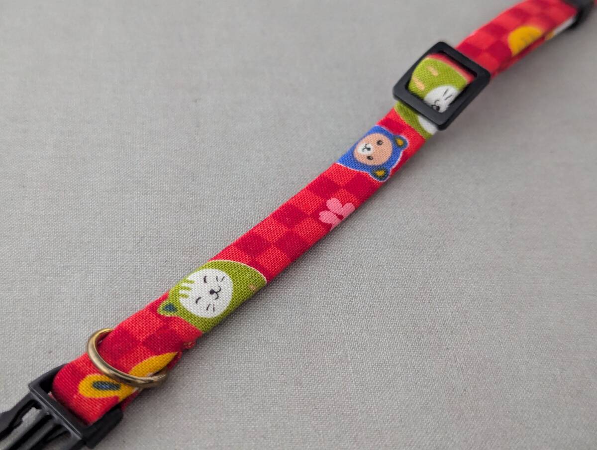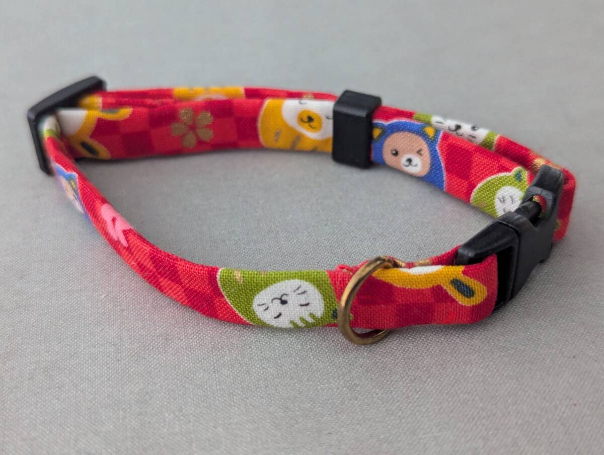 ★手作り京都作家物 猫 首輪 和柄★赤市松地猫ダルマ柄★ハンドメイド (セーフティタイプ) 即決700円