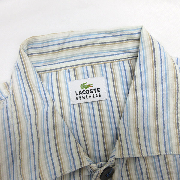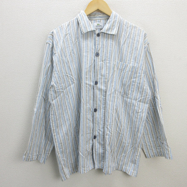 C■日本製■ラコステ/LACOSTE HOMEWEAR ストライプ 長袖シャツ【L】青系/MENS■146【中古】■