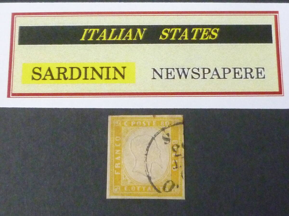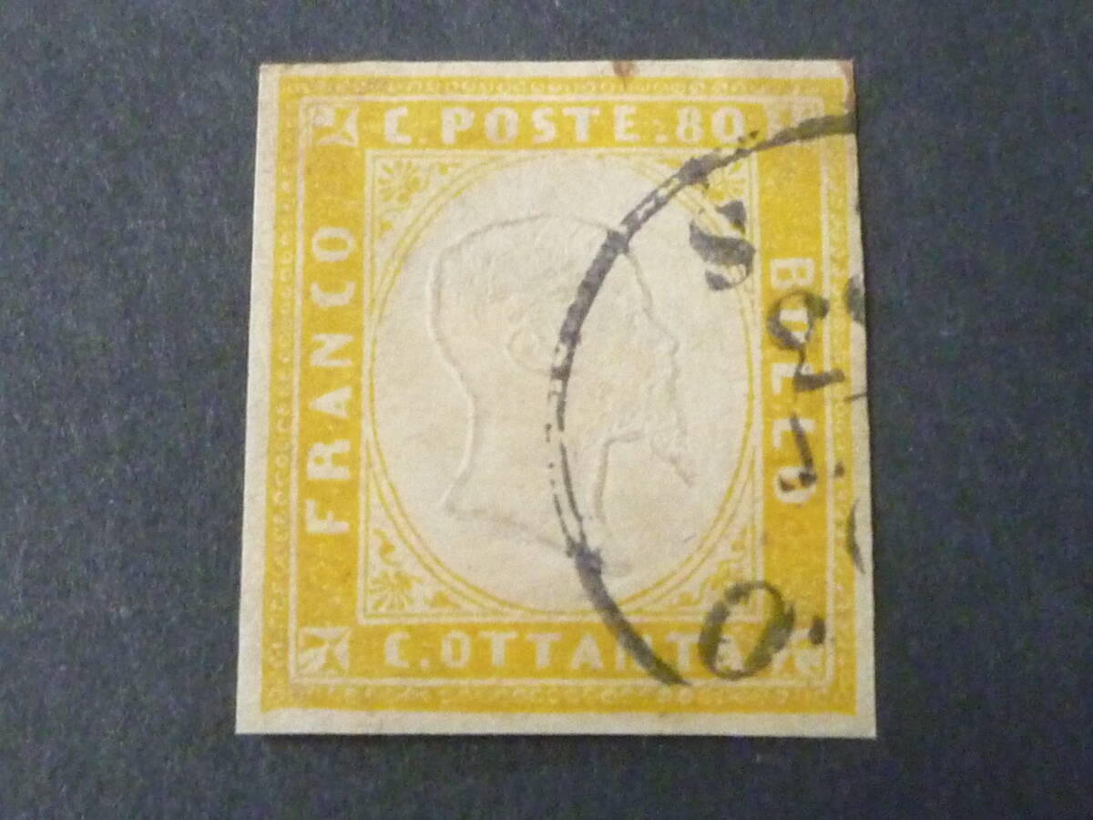 24 M №13 イタリア切手 SARDININ 1855-63年 SC#14a 80c 使用済 【近年版SC評価 $360】 ※説明欄必読