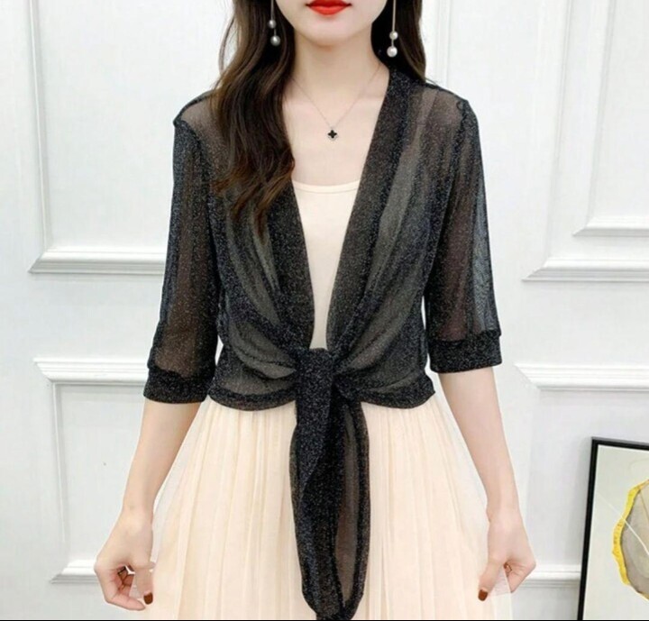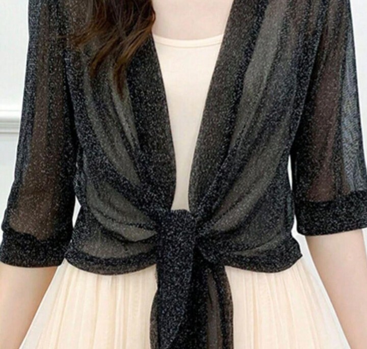 柔らかくごく軽いストレッチチュール素材で、パーティーフォーマルドレス羽織に重宝します!