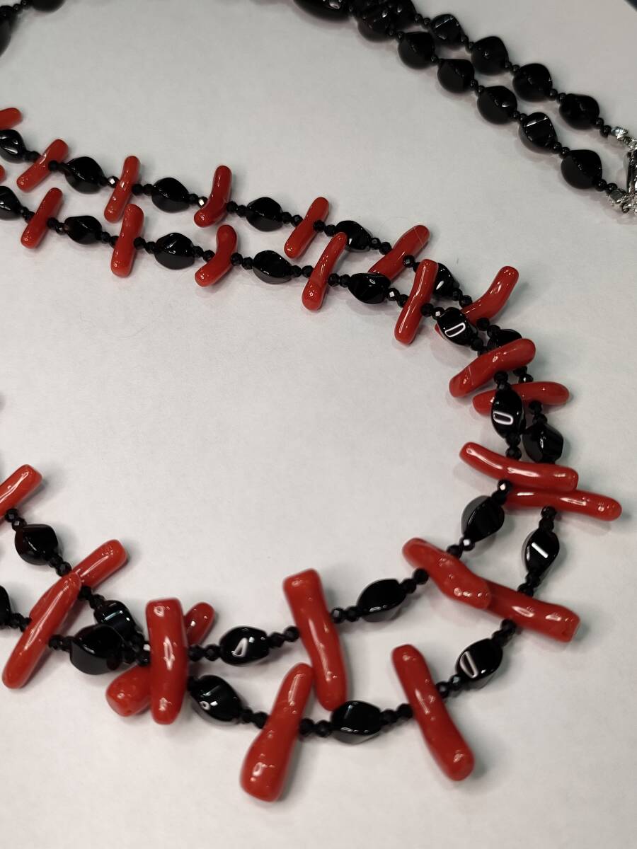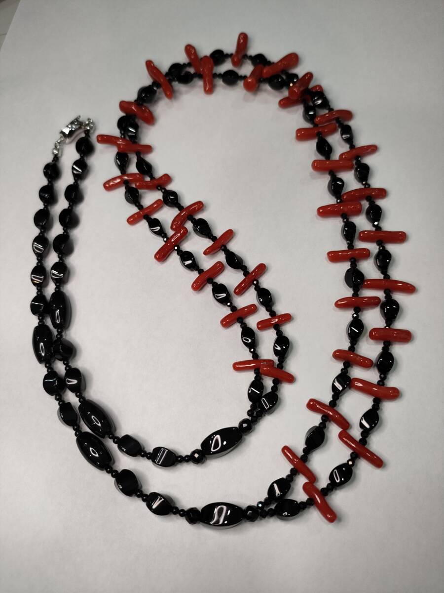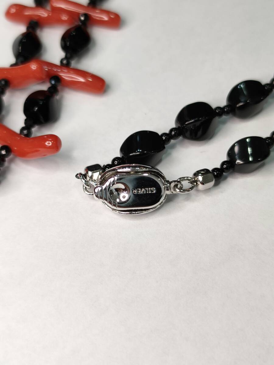 a1004 ネックレス オニキス サンゴ 全長約70cm 金具シルバー