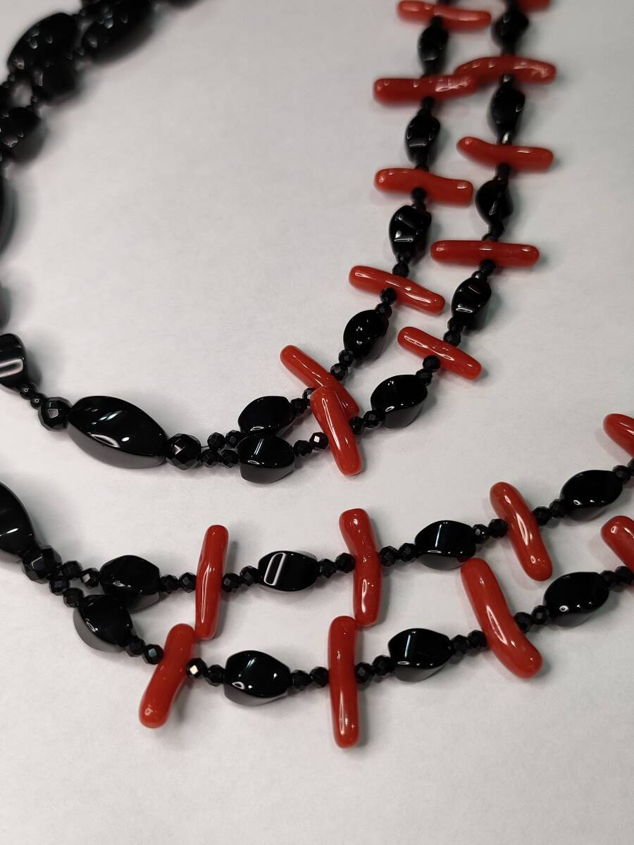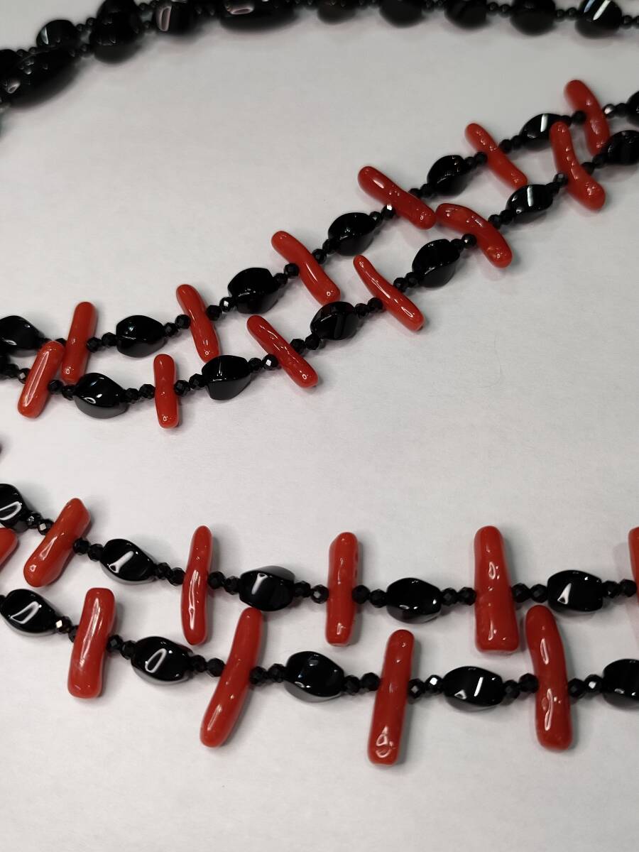 a1004 ネックレス オニキス サンゴ 全長約70cm 金具シルバー
