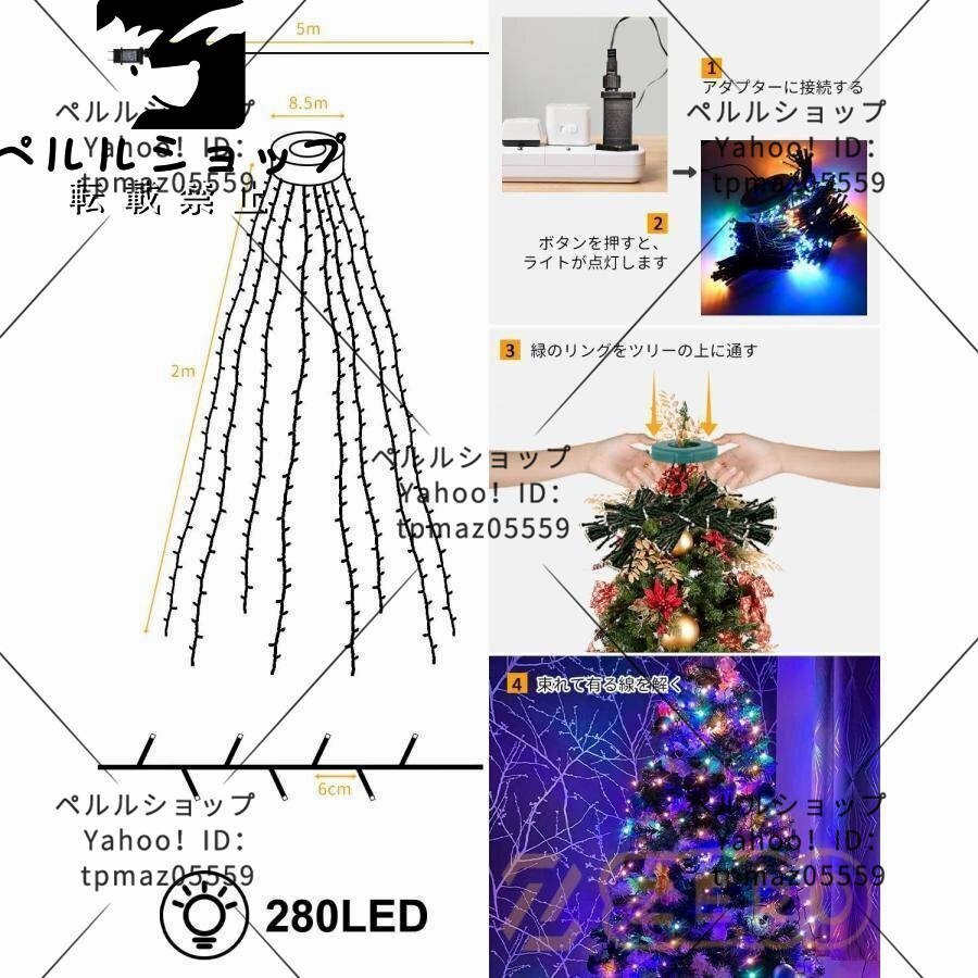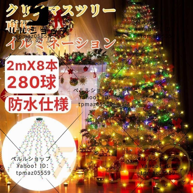 イルミネーションライト クリスマス イルミネーション 280球 2mX8本 クリスマス飾りライト 8種類モード ドレープライト タイマー機能 防水